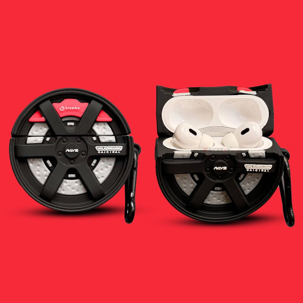 Spor araba tutkunlarına özel olarak tasarlanan bu benzersiz AirPods kılıfı, jant ve fren diskini andıran şık ve dikkat çekici bir görünüme sahiptir.