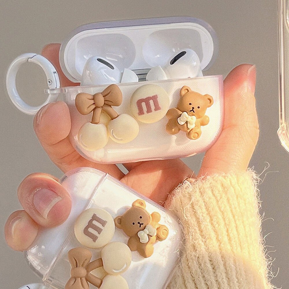 Apple AirPods 3.Nesil Uyumlu Kopçalı Ayıcık Firgürlü Sevimli Silikon Kılıf