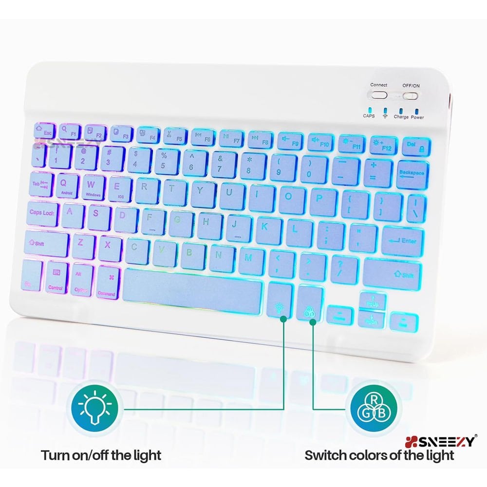 Sıradışı deneyimler için yaratılan Mini Wireless Bluetooth Bağlantılı RGB Işıklı Türkçe Klavye Mouse Set'i ile işlerinizi kolaylaştırın! Bu mini klavye, Türkçe QWERTY düzenine sahiptir ve 7 farklı renk seçeneği ile arka tuş aydınlatmasıyla dikkat çeker.