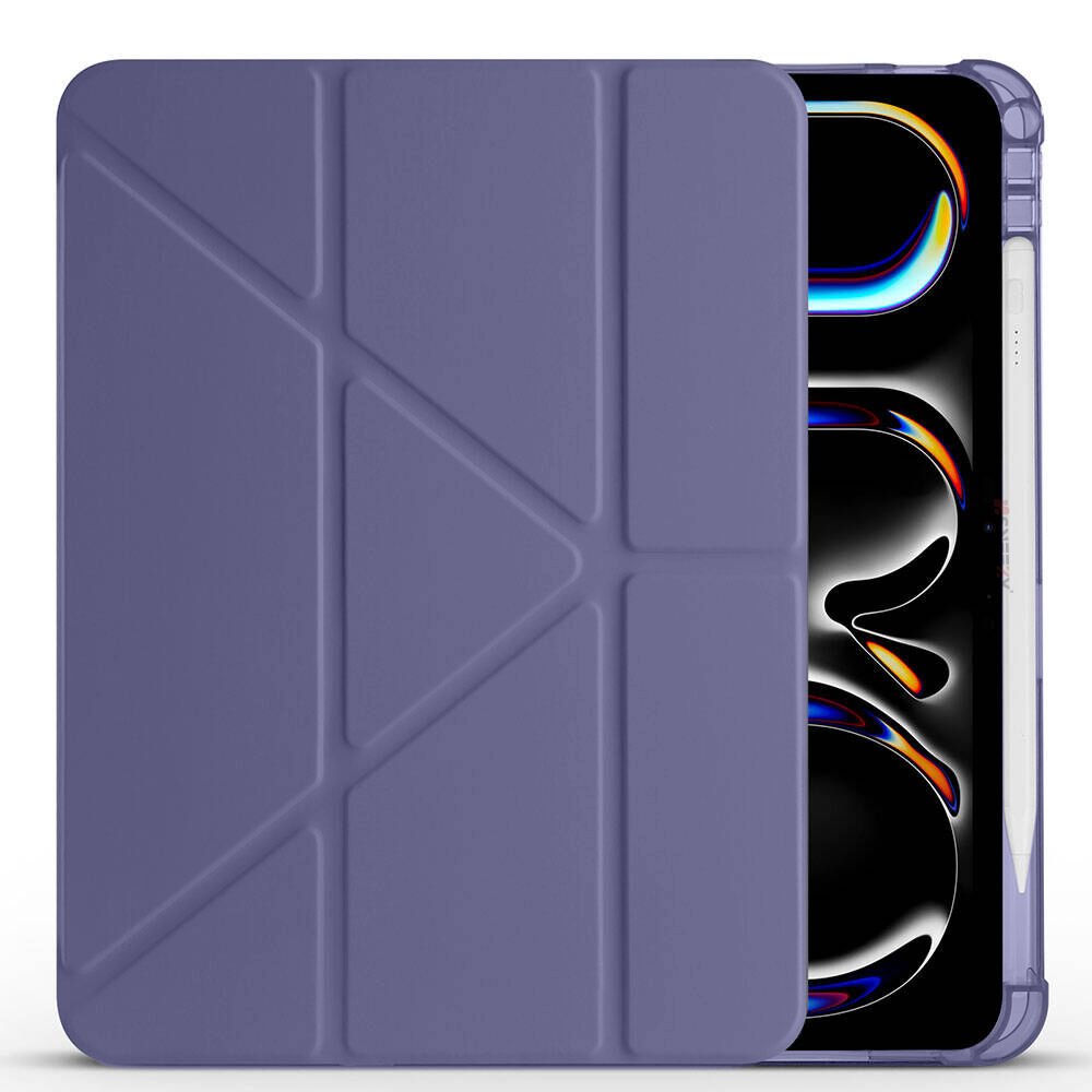 Apple iPad Pro 11 inç 4.Nesil M2 2022 Uyumlu Kılıf Üçgen Katlanabilir Kalem Şarj Bölmeli Kılıf Lavanta