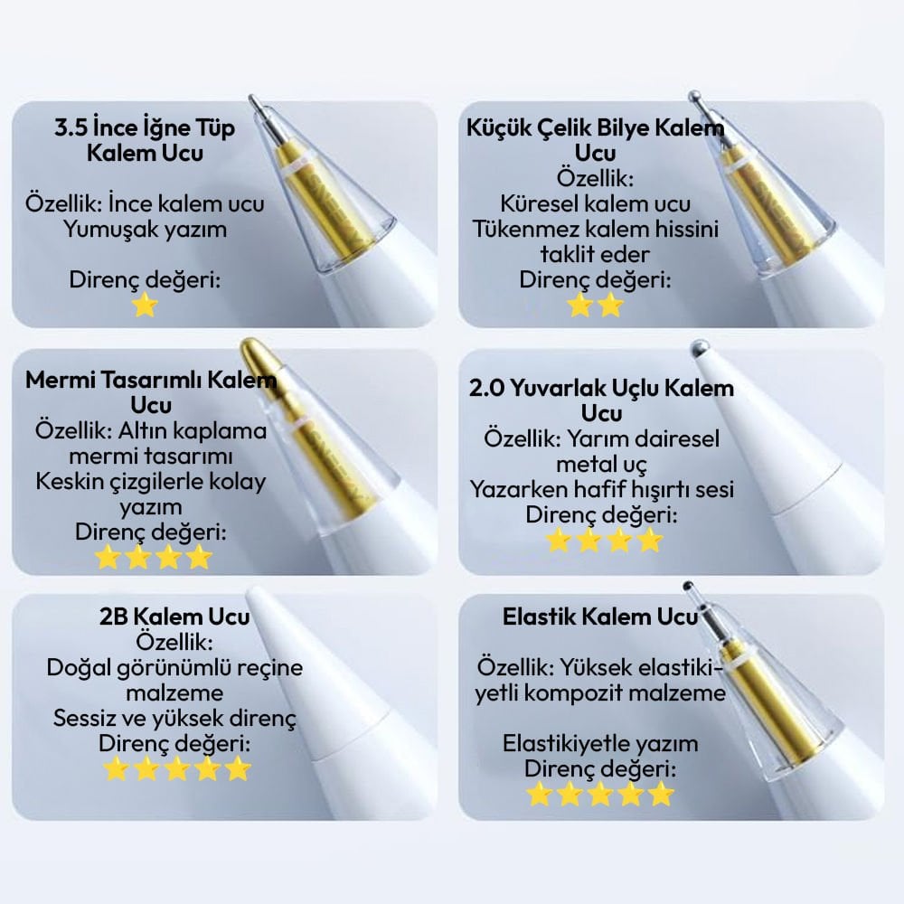 Apple Pencil 1-2 Nesil Pro USB-C Uyumlu Yedek Uç Seti 6 Farklı Hissiyatla Çizim ve Yazım İmkanı