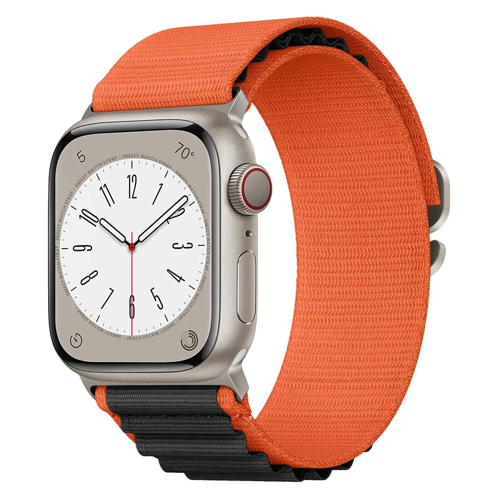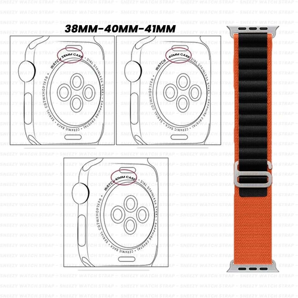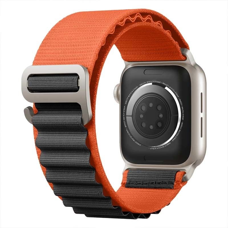 Apple Watch 38mm 40mm 41mm Seri 1 2 3 4 5 6 7 8 Se Uyumlu Frost Alpine Loop Kordon Turuncu-Siyah