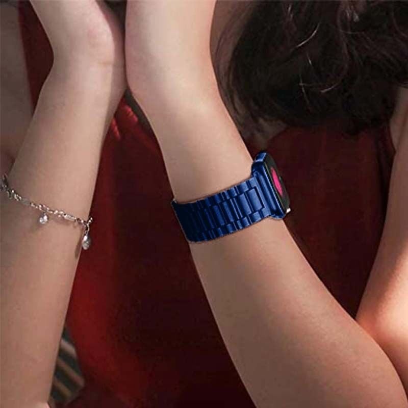 Apple Watch 38mm 40mm 41mm Watch Seri 3 4 5 6 7 Se Uyumlu Ironweft Döküm Çelik Metal Kordon Lacivert