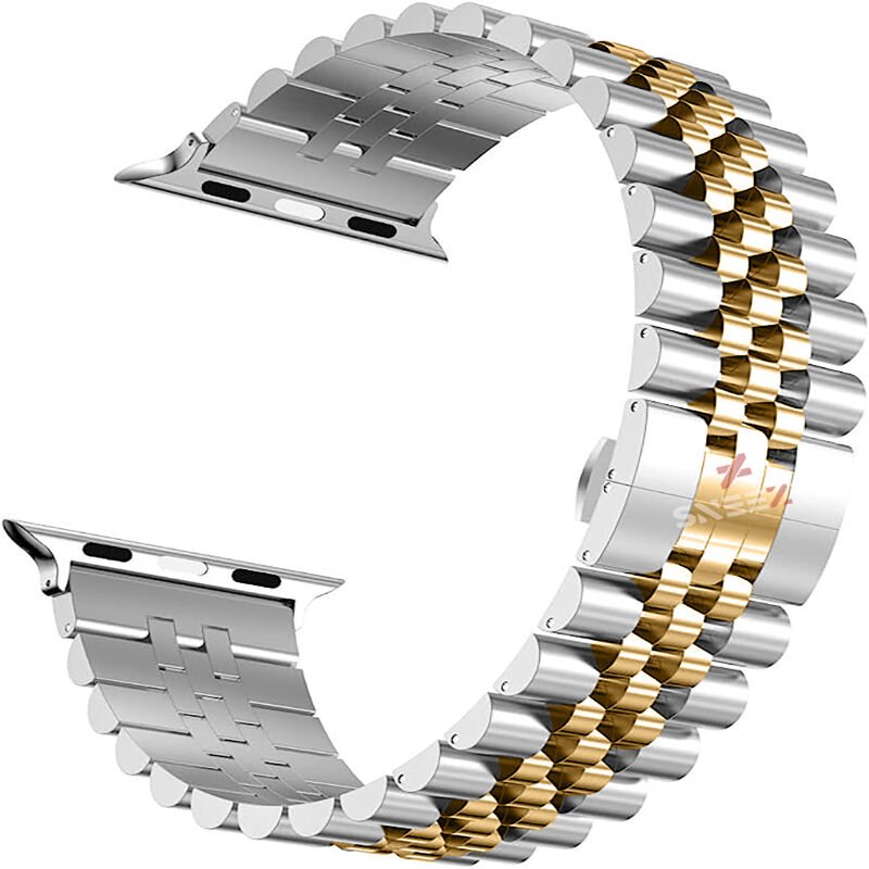 Apple Watch 42mm 44mm 45mm 1 2 3 4 5 6 7 8 Se Seri Uyumlu Ironmesh Döküm Çelik Metal Kordon Gümüş - Gold