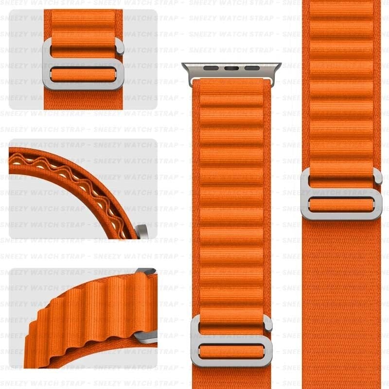 Apple Watch 42mm 44mm 45mm Seri 1 2 3 4 5 6 7 8 Se Uyumlu Frost Alpine Loop Kordon Turuncu