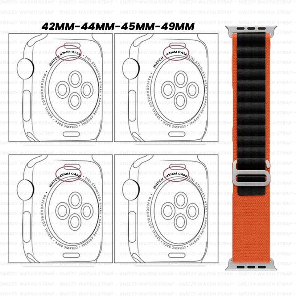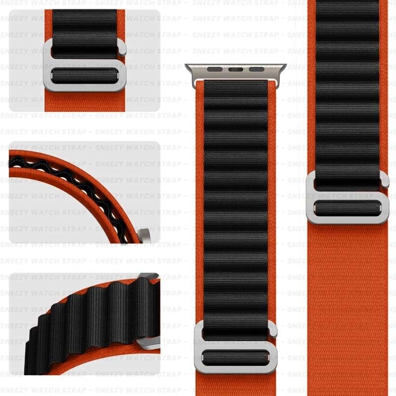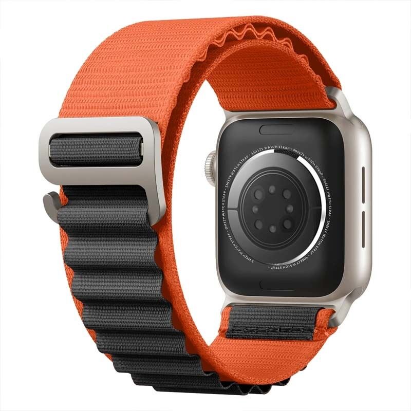 Apple Watch 42mm 44mm 45mm Seri 1 2 3 4 5 6 7 8 Se Uyumlu Frost Alpine Loop Kordon Turuncu-Siyah