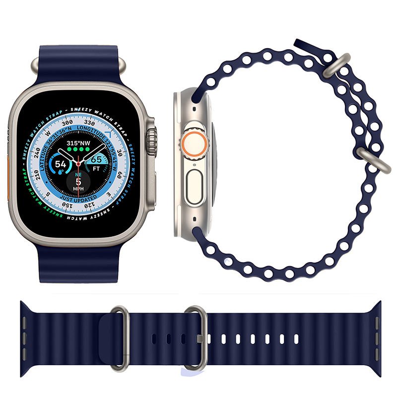 Apple Watch 42mm 44mm 45mm Seri 1 2 3 4 5 6 7 8 Se Uyumlu Seaflex Ocean Silikon Kordon Lacivert