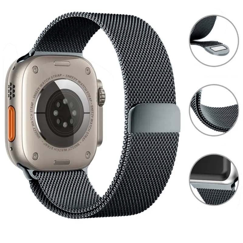 Apple Watch 49mm Seri 8 Ultra Uyumlu Woven Wire Tasarım Metal Hasır Kordon