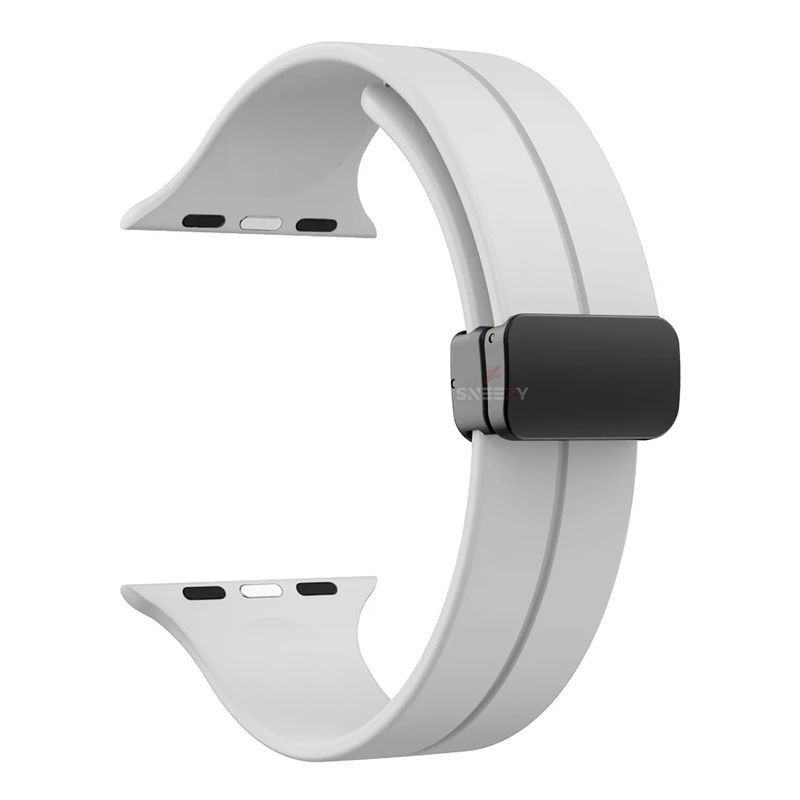 Apple Watch 49mm Ultra Seri Uyumlu Coastal Manyetik Tokalı Silikon Kordon Beyaz