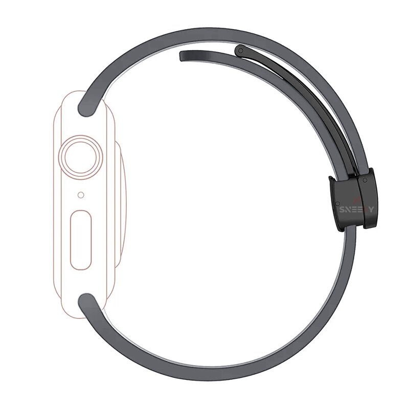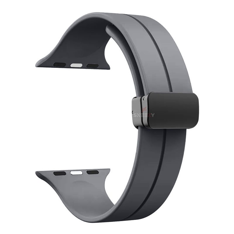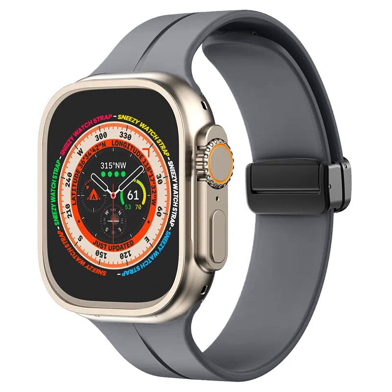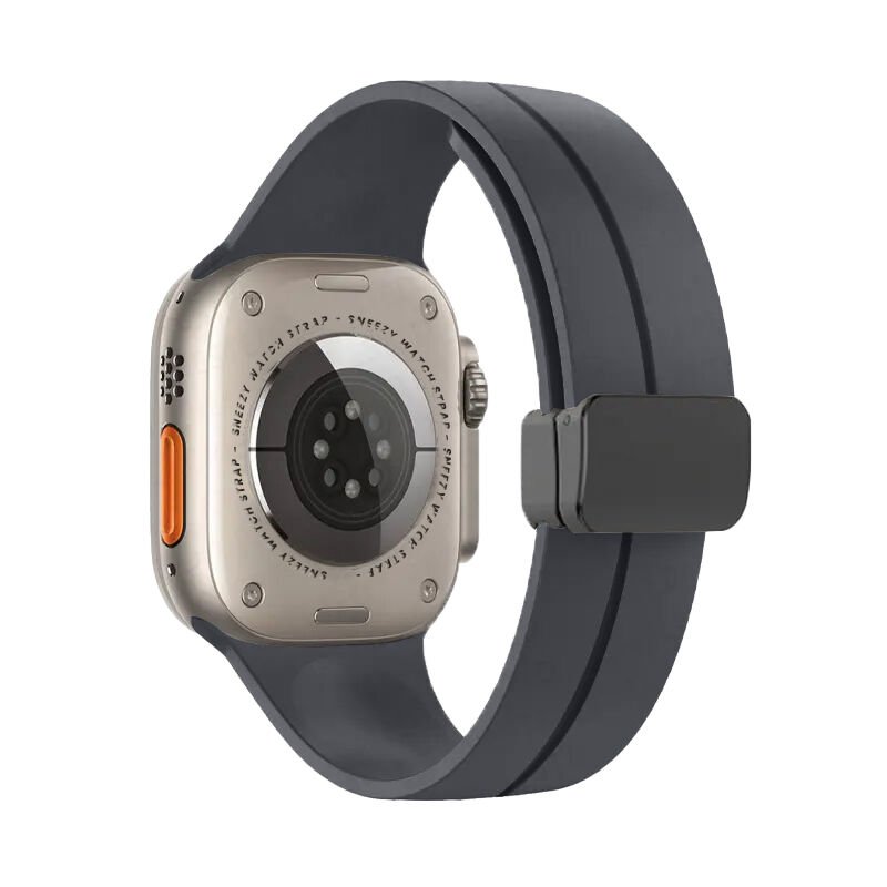 Apple Watch 49mm Ultra Seri Uyumlu Coastal Manyetik Tokalı Silikon Kordon Koyu Gri