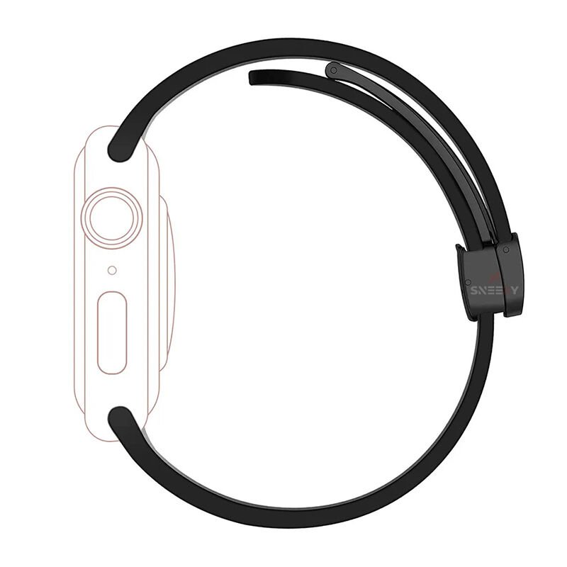 Apple Watch 49mm Ultra Seri Uyumlu Coastal Manyetik Tokalı Silikon Kordon Siyah