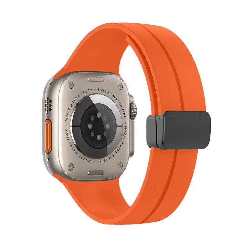 Apple Watch 49mm Ultra Seri Uyumlu Coastal Manyetik Tokalı Silikon Kordon Turuncu