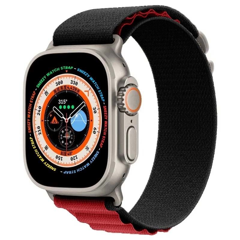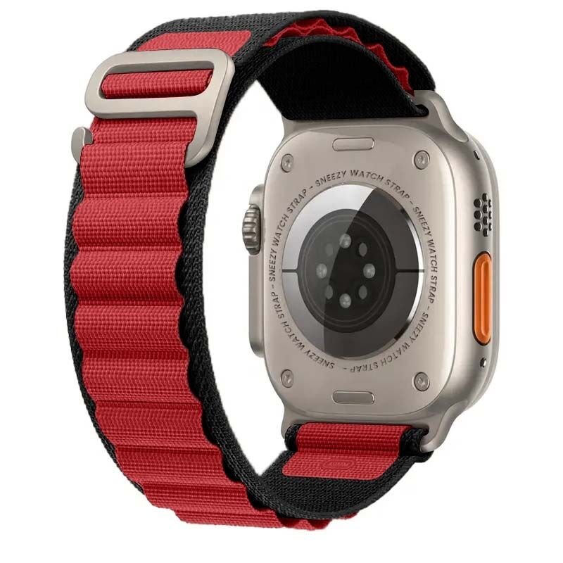 Apple Watch 49mm Ultra Seri Uyumlu Frost Alpine Loop Kordon Siyah-Kırmızı