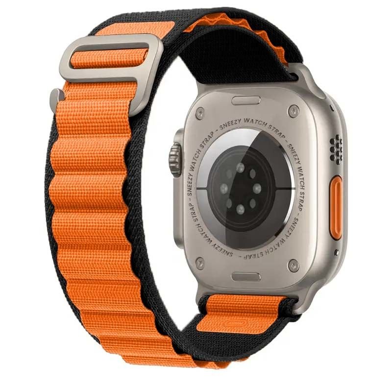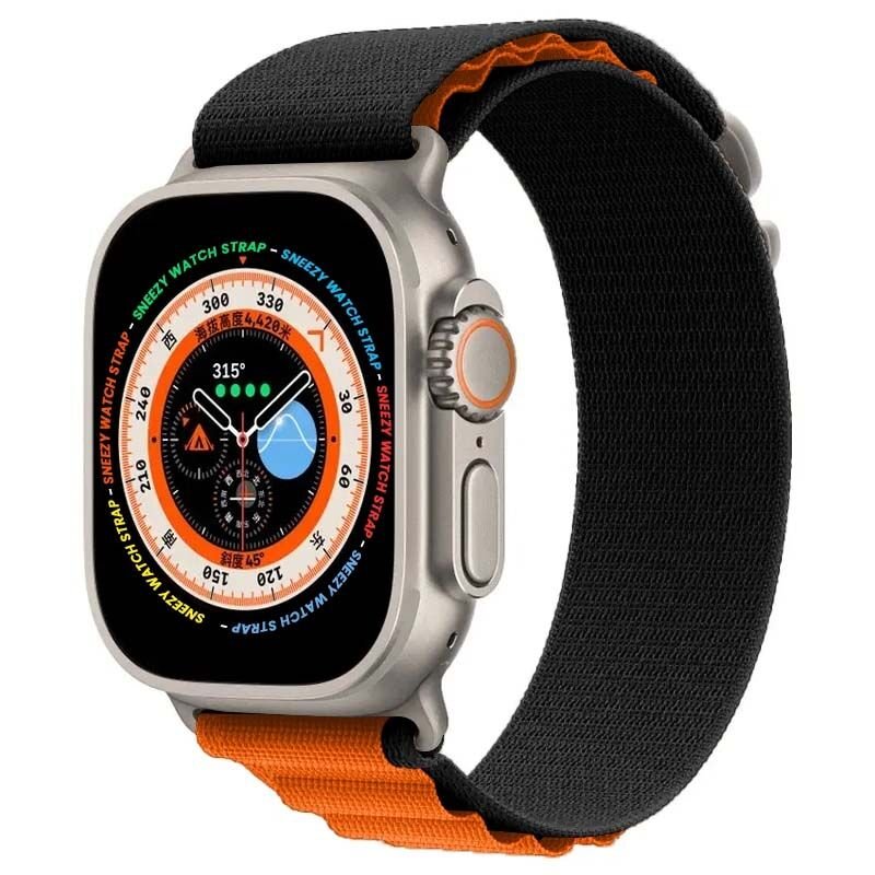 Apple Watch 49mm Ultra Seri Uyumlu Frost Alpine Loop Kordon Siyah-Turuncu