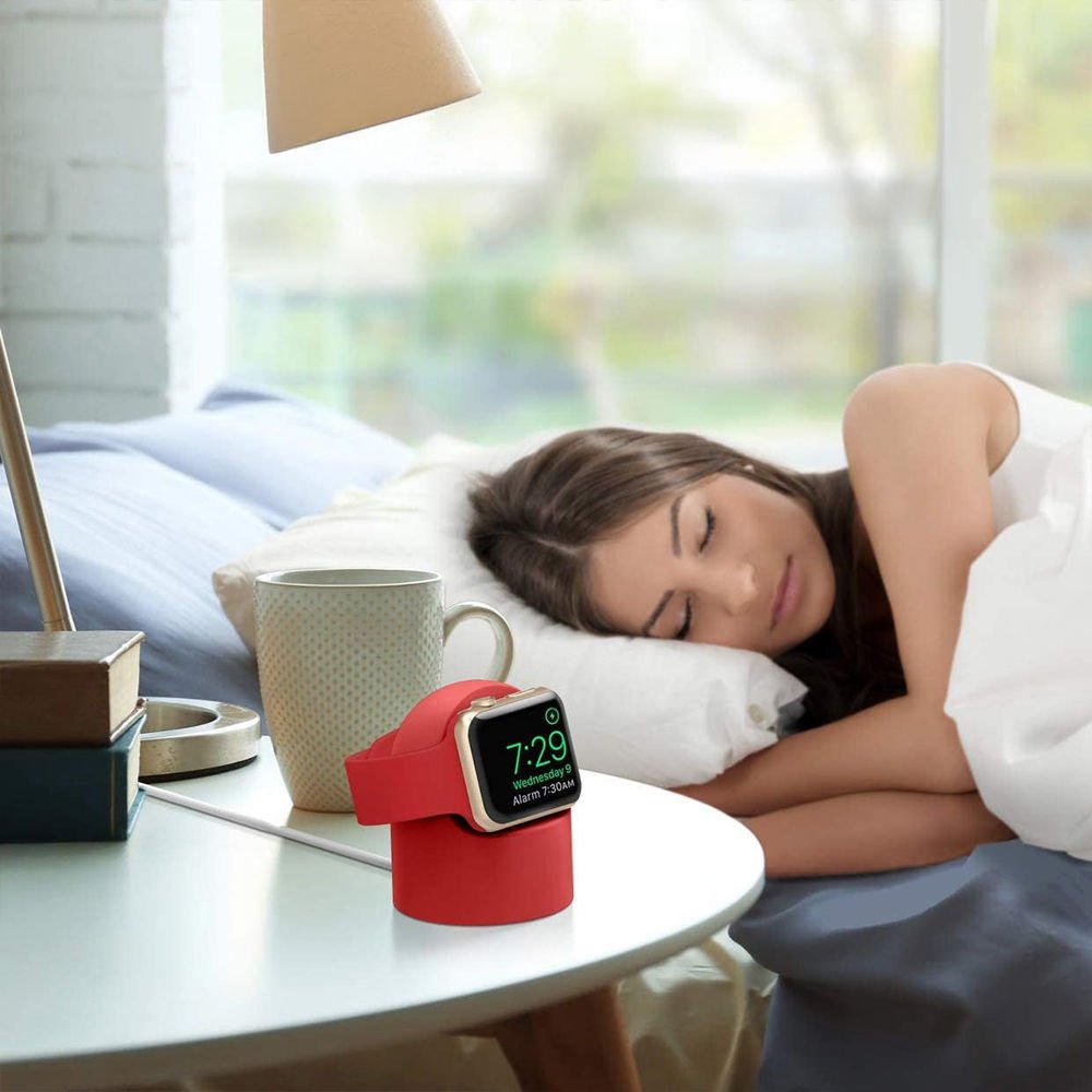 Apple Watch 7 8 9 10 İle Uyumlu Silikon Akıllı Saat Şarj Standı ve Typ-c Şarj Kablosu Kırmızı