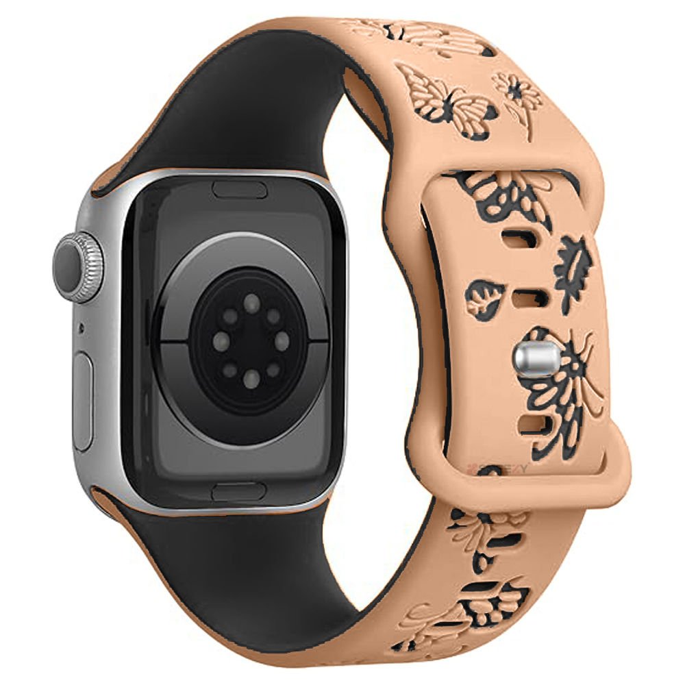 Apple Watch Ultra 1 ve 2 Uyumlu 49mm Kelebek Desenli Yumuşak Silikon Kordon