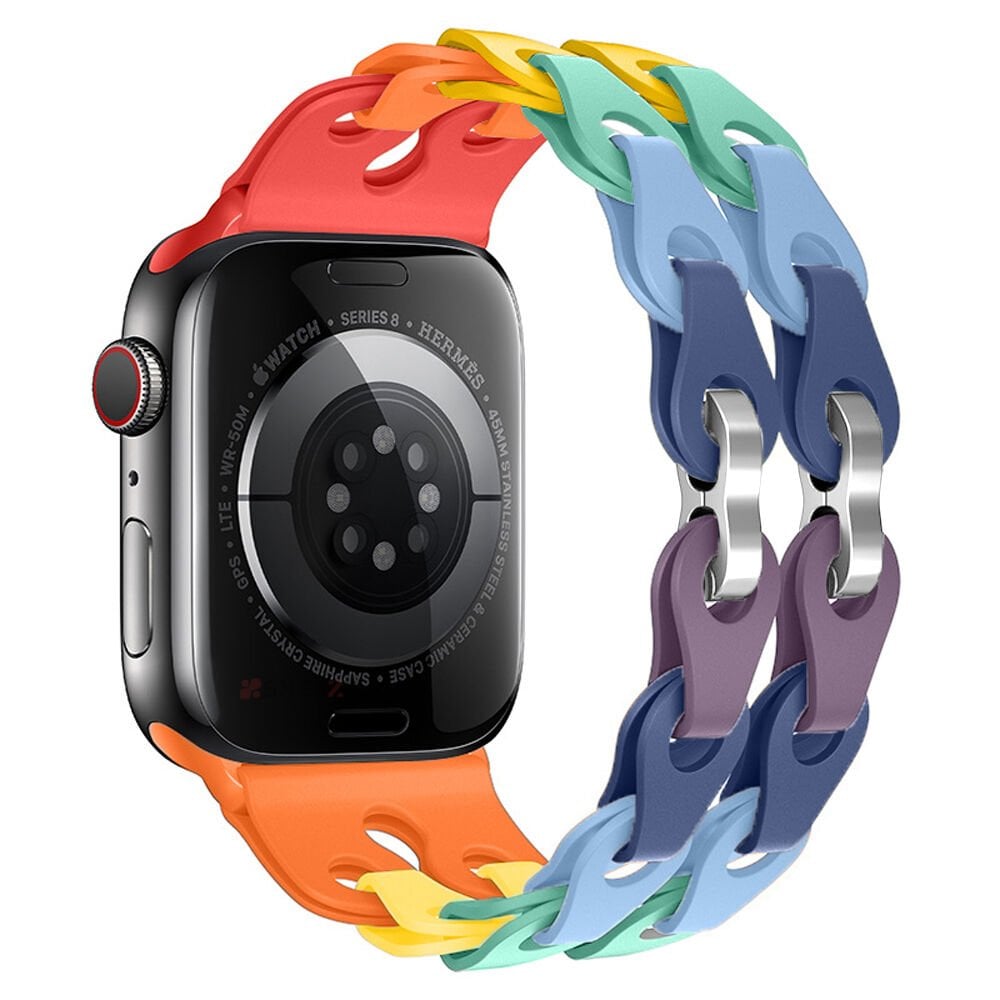 Tarzınızı bileğinizde yansıtın! Zincir Silikon Kordon, cesur renk geçişleri ve benzersiz zincir formu ile Apple Watch’unuza dinamik bir hava katıyor.