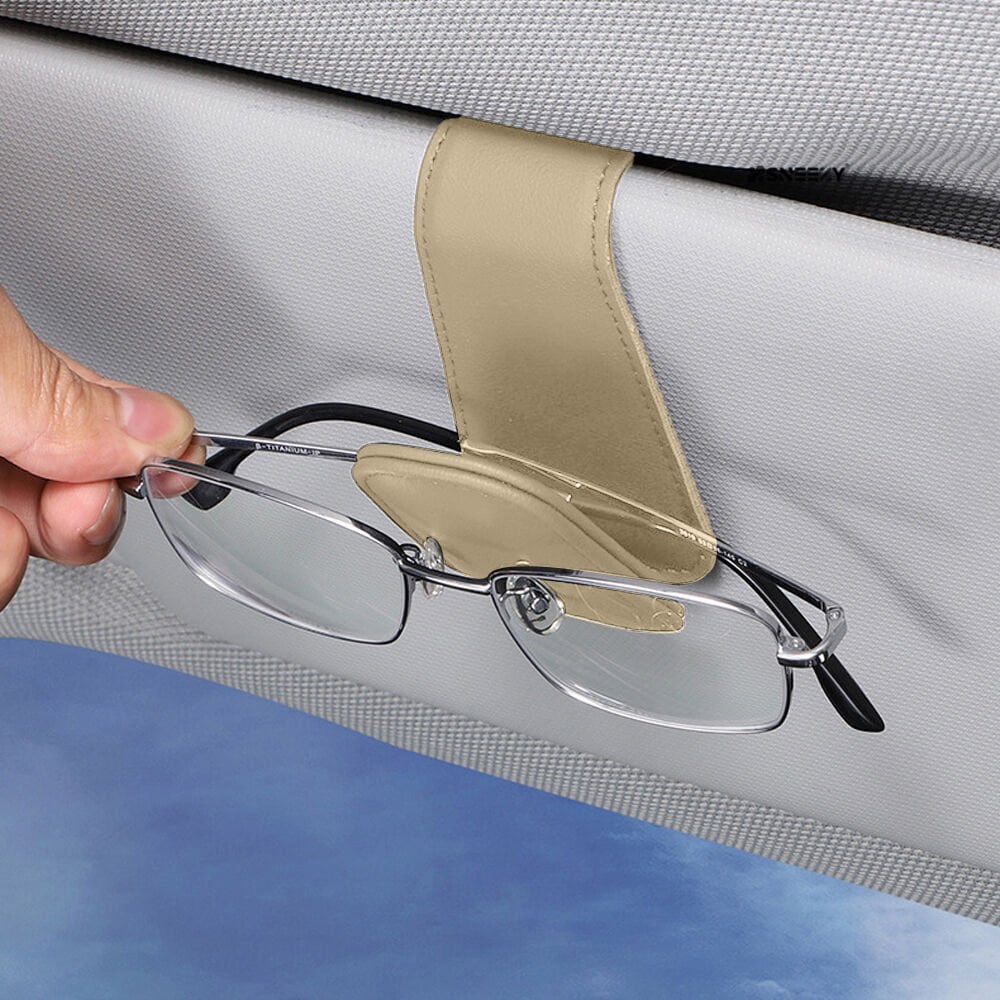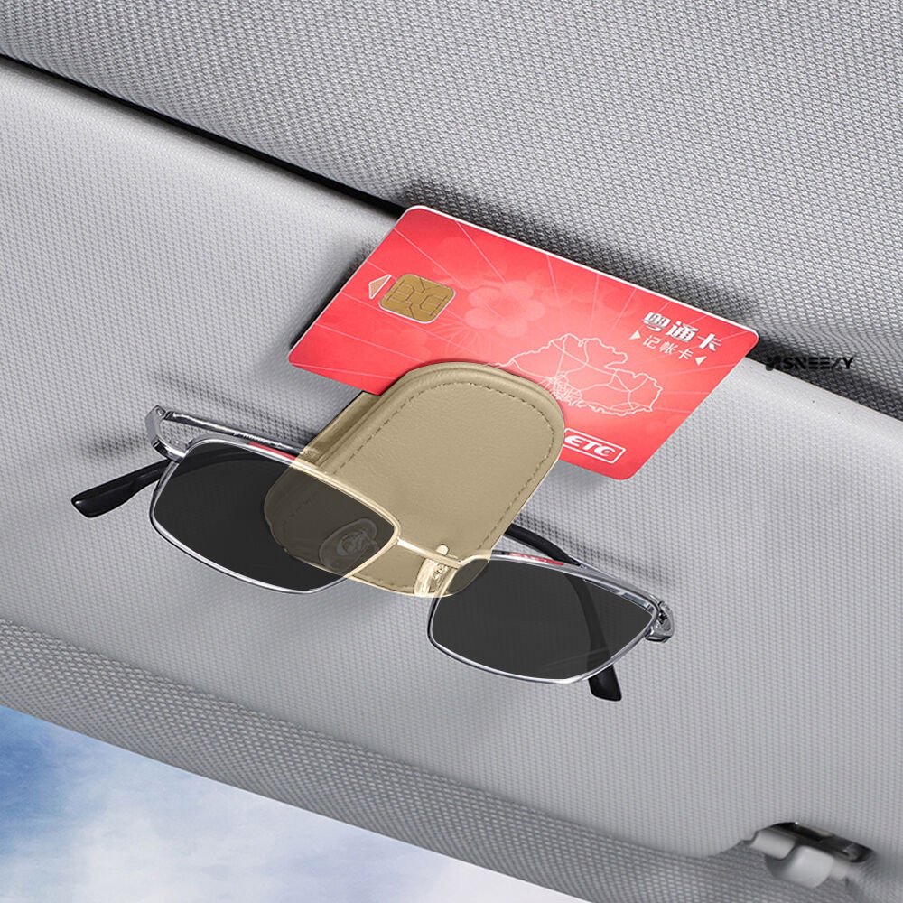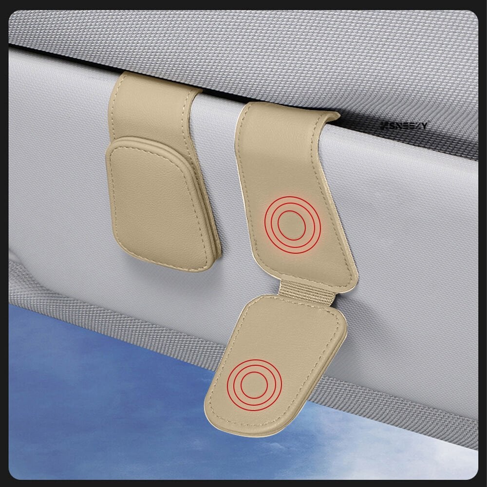 Araç İçi Gözlük Tutucu Deri Manyetik Kart ve Gözlük Tutucu Klips Oto Gözlük Tutucu Bej