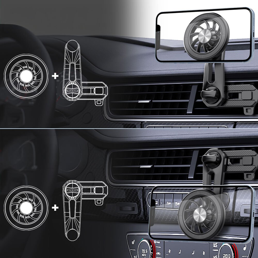 Araç İçi Manyetik Telefon Tutucu Havalandırma Izgarası Uyumlu 360° Döner Mini Fan Tasarımlı Telefon Standı