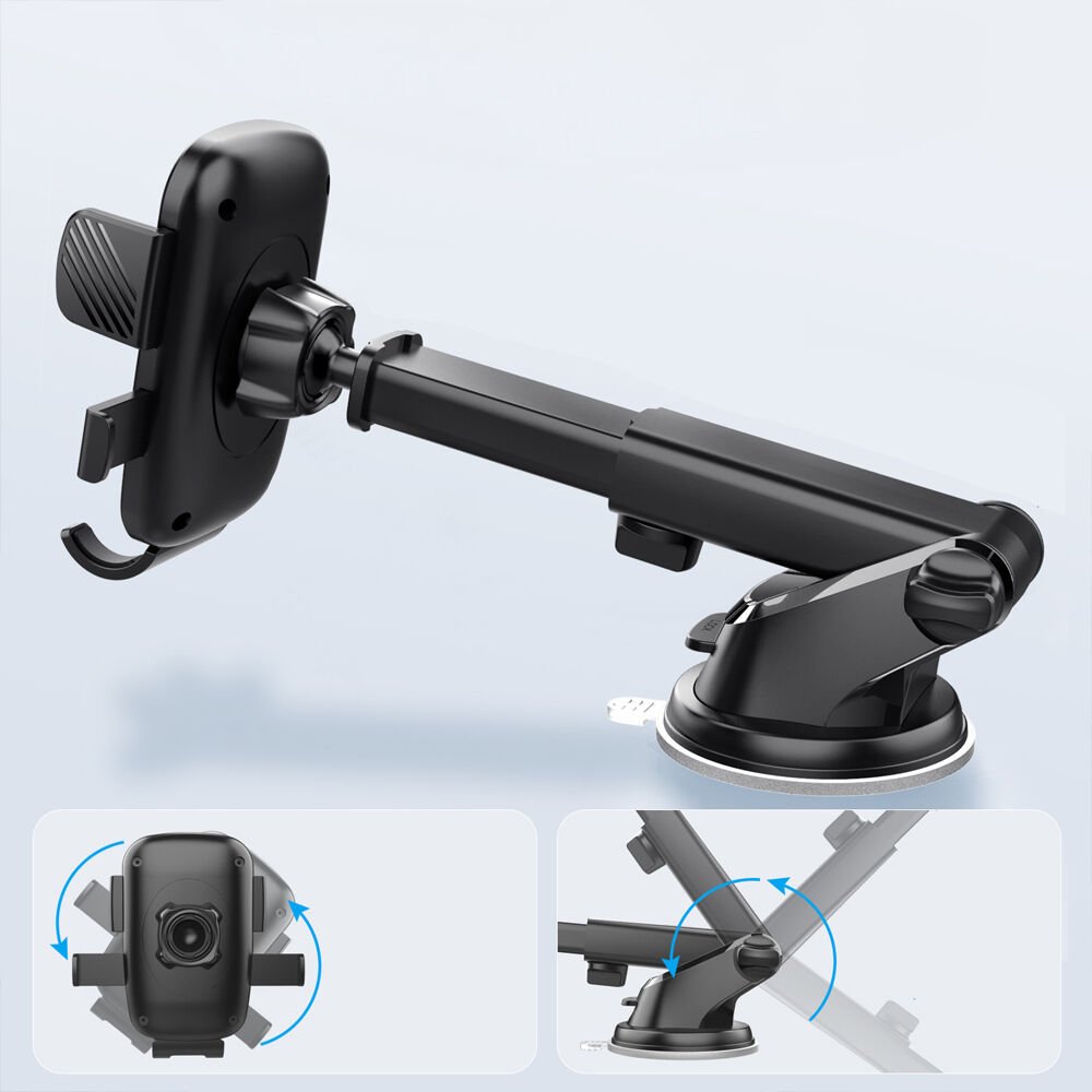 Araç İçi Telefon Tutucu Vantuzlu Teleskopik Kollu Dashboard ve Cam Uyumlu Ayarlanabilir Telefon Standı
