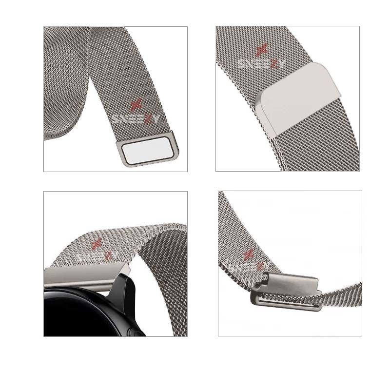 Huawei Watch 3 Elite-Classic 46mm-Watch 3 Pro-Elite 22mm Uyumlu Woven Wire Metal Hasır Kordon Starlight