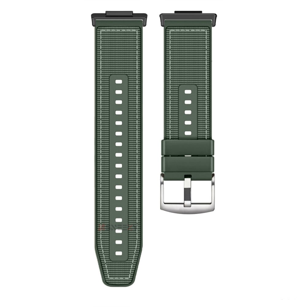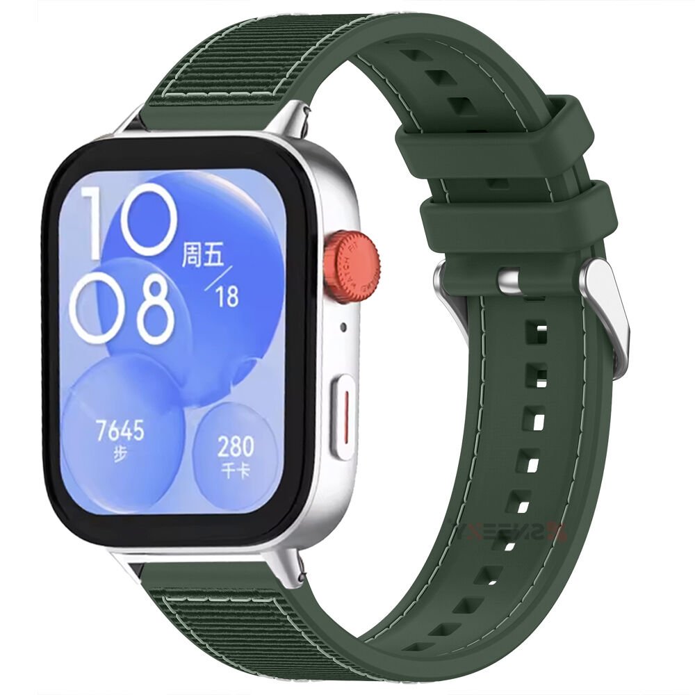 Huawei Watch Fit 3 İle Uyumlu Dikiş Desenli Dokuma Silikon Kordon Haki