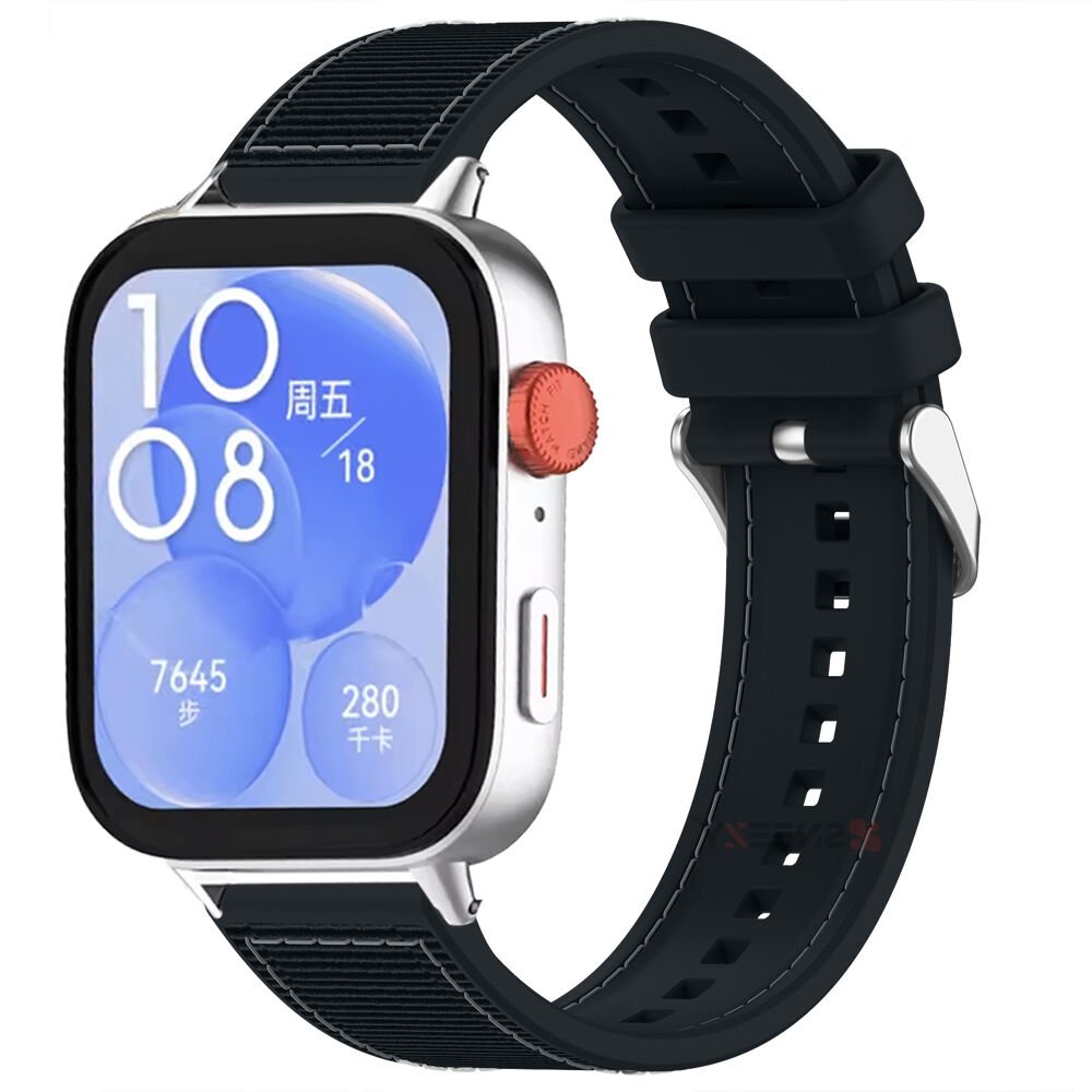 Huawei Watch Fit 3 İle Uyumlu Dikiş Desenli Dokuma Silikon Kordon Siyah