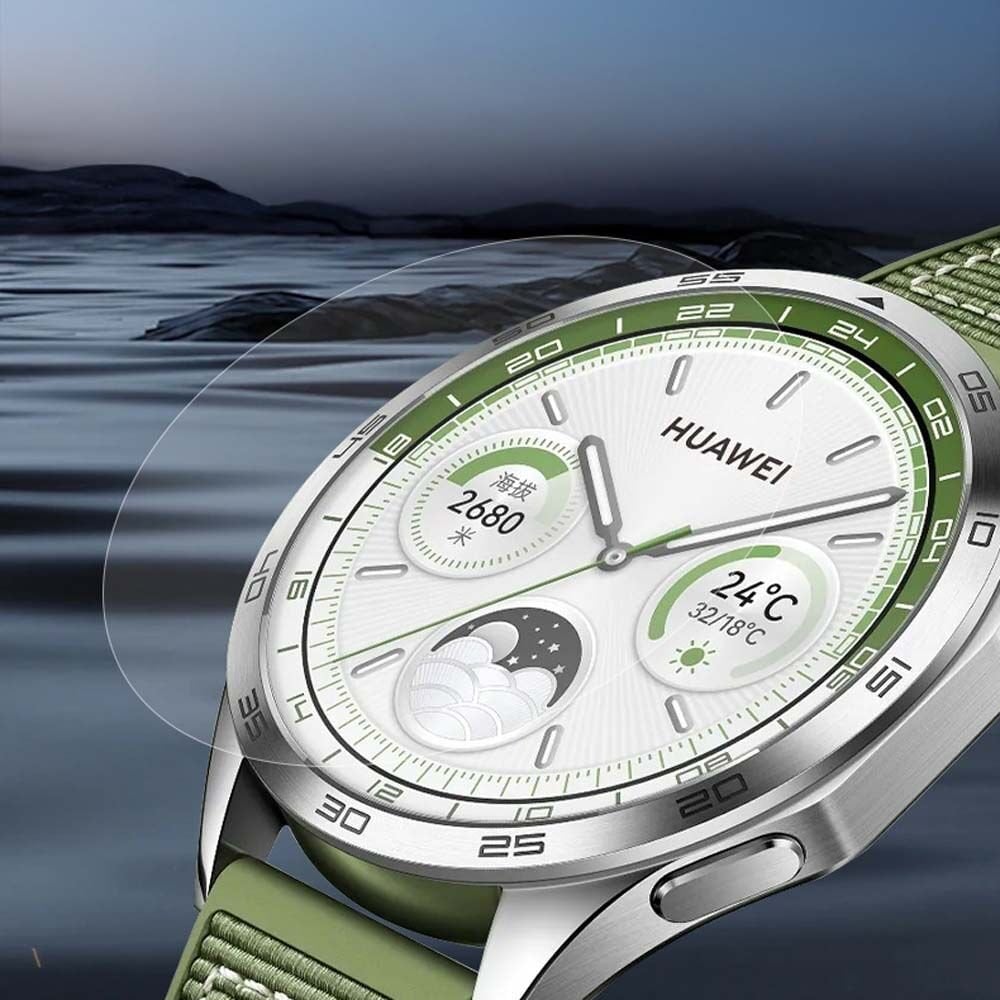 Huawei Watch GT4 46mm Uyumlu Kolay Takılabilir Takma Temizleme Aparatlı Temperli Cam Ekran Koruyucu