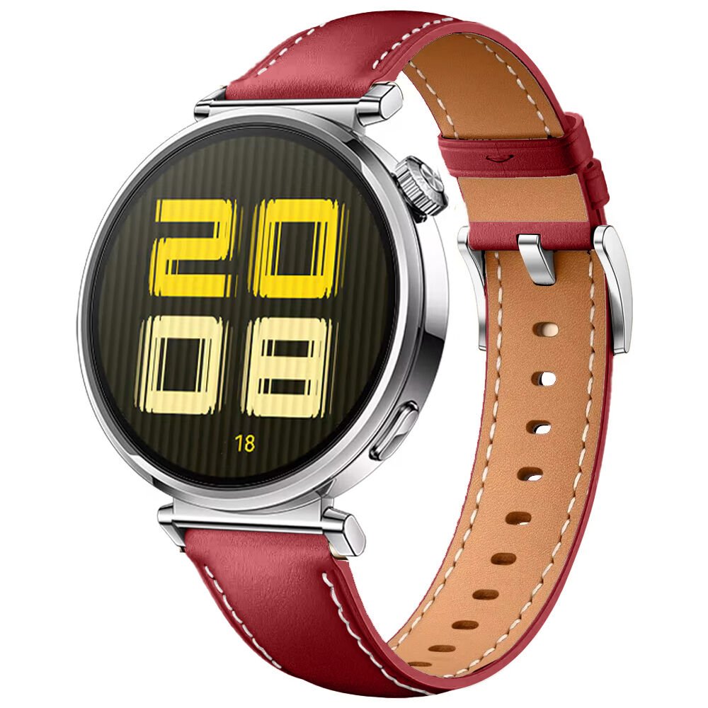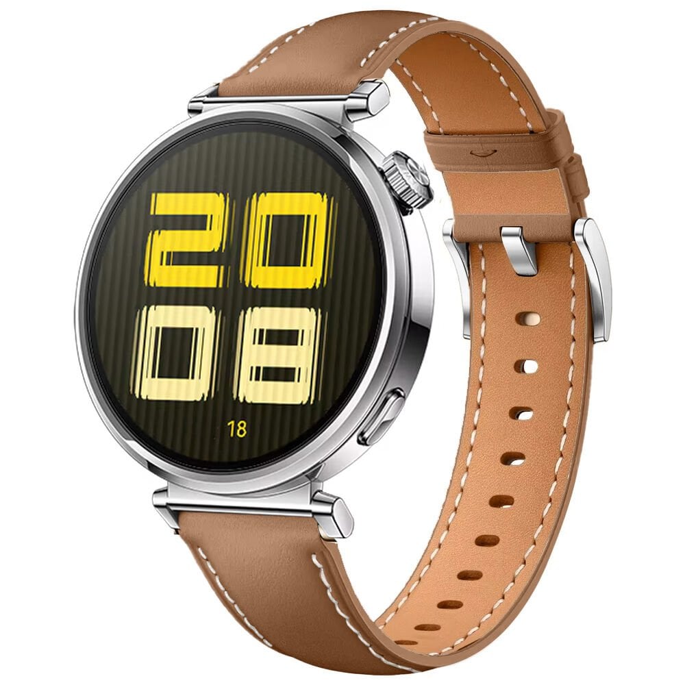 Huawei Watch GT5 41mm İle Uyumlu Gümüş Metal Tokalı Deri Zarif Şık Kordon