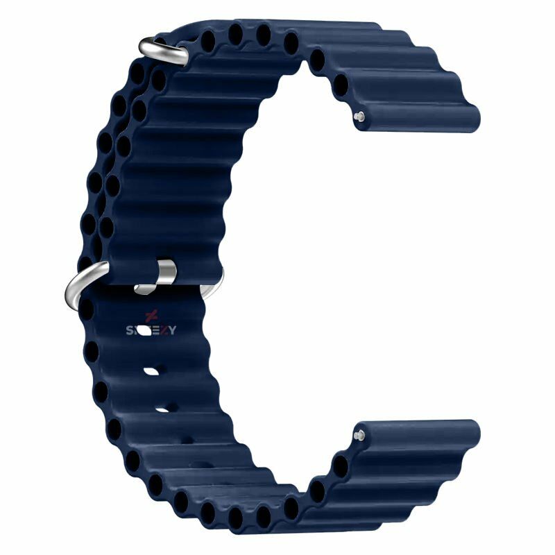 Huawei Watch GT5 46mm Uyumlu Kordon Ocean Tasarım Metal Tokalı Soft Silikon Kordon Lacivert