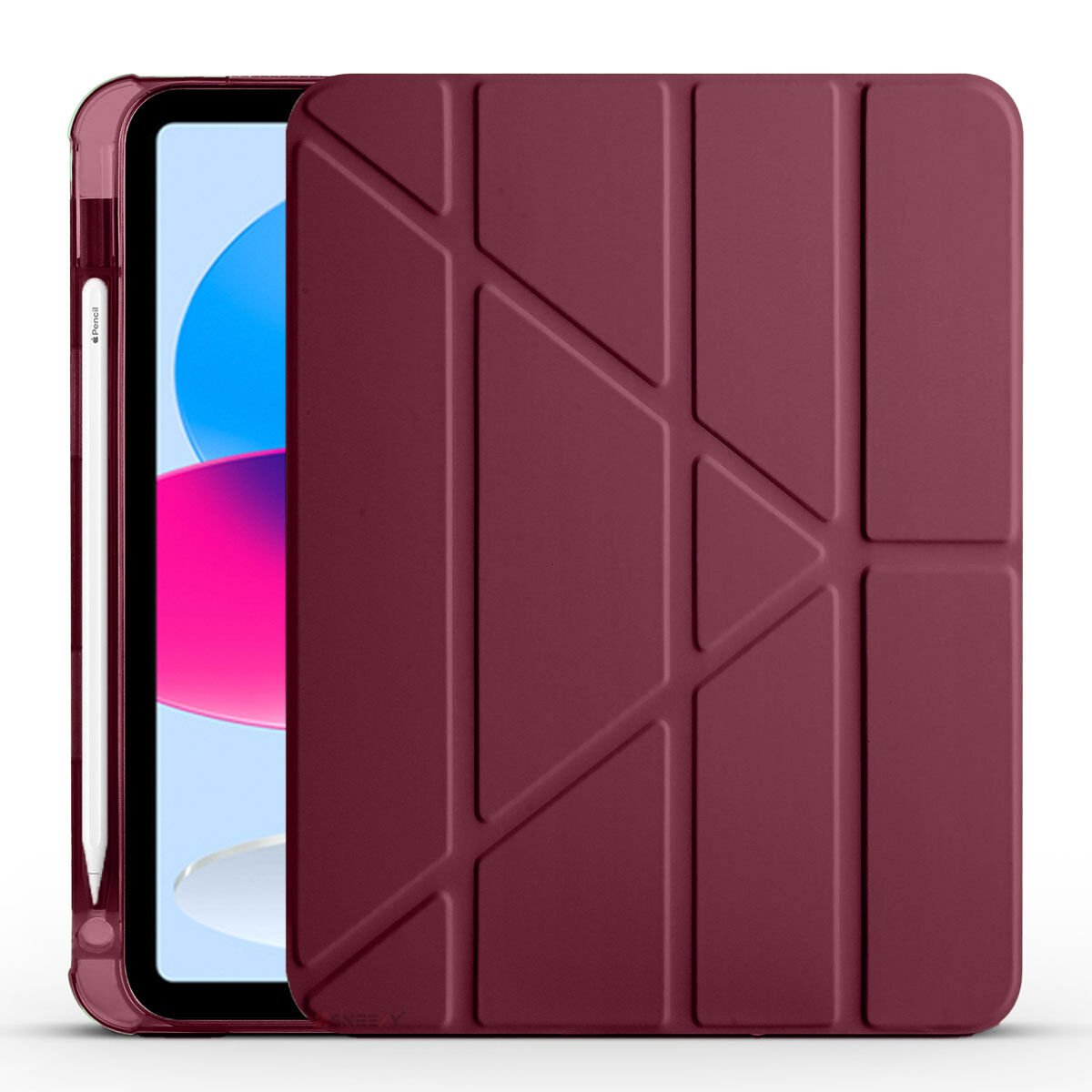 İpad 10.Nesil 10.9 inç 2022 Uyumlu Üçgen Katlanabilir Kalemlikli Yatay Dikey Standlı Akıllı Kılıf Mürdüm - Mürdüm