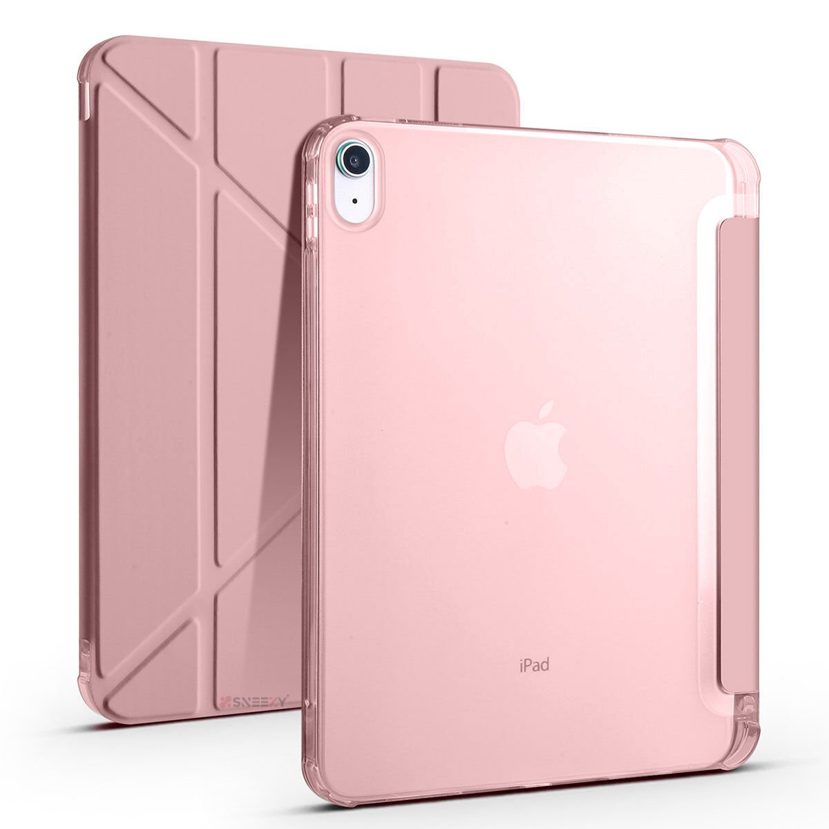 İpad 10.Nesil 10.9 inç 2022 Uyumlu Üçgen Katlanabilir Kalemlikli Yatay Dikey Standlı Akıllı Kılıf Pembe - Pembe