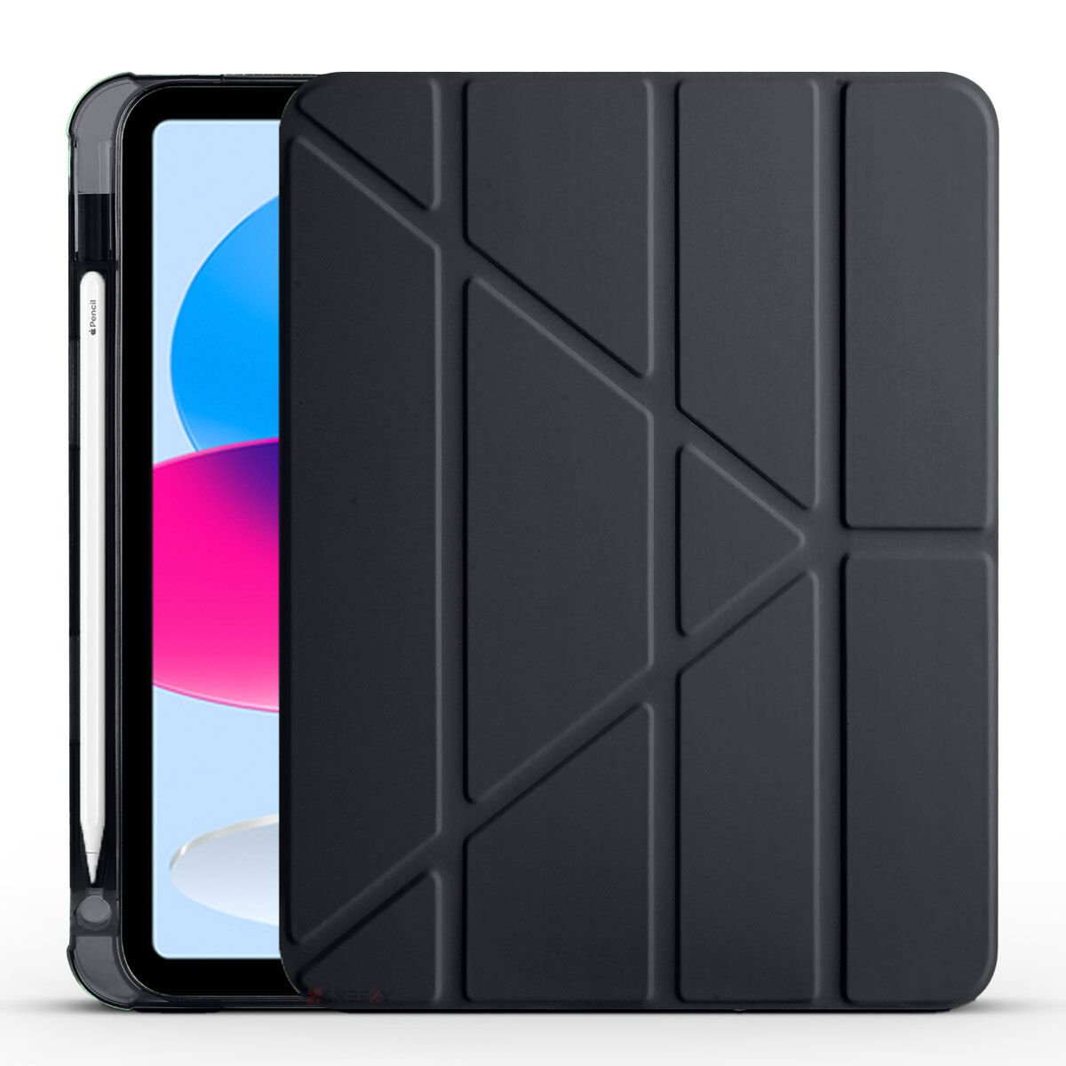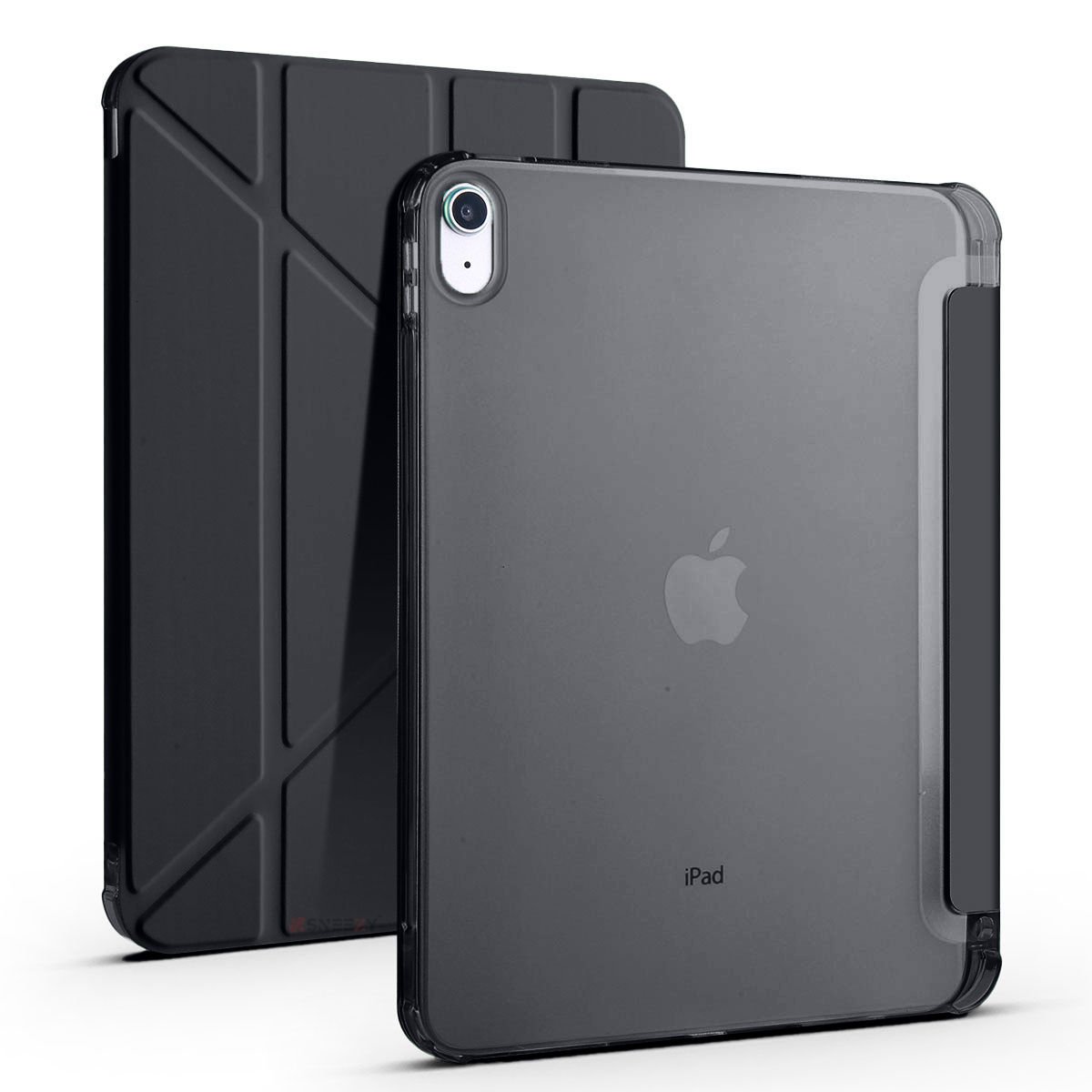 İpad 10.Nesil 10.9 inç 2022 Uyumlu Üçgen Katlanabilir Kalemlikli Yatay Dikey Standlı Akıllı Kılıf Siyah - Siyah