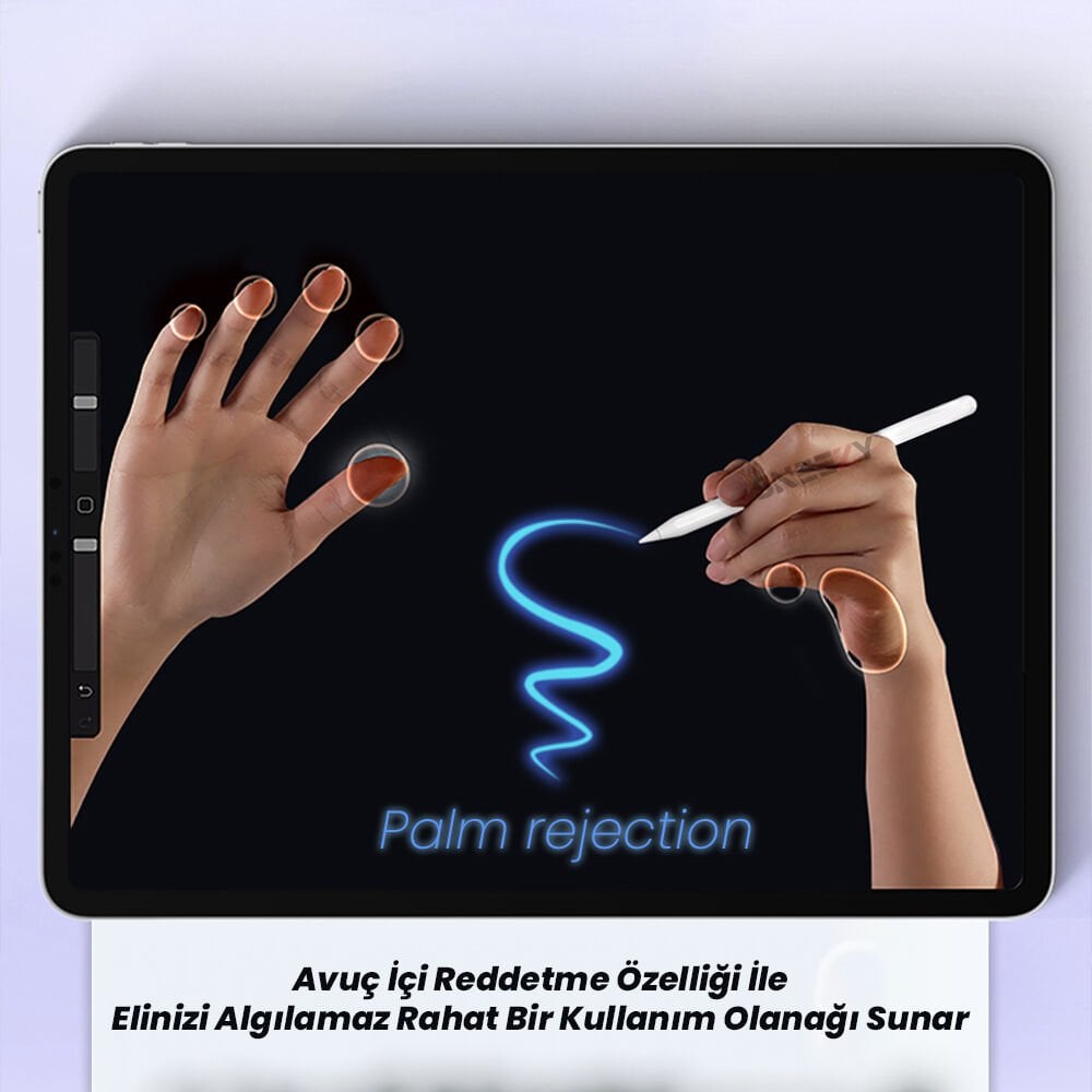 Avuç İçi Reddetme Özelliği: Bu benzersiz özellik, tablete avuç içi dokunsa bile yanlış algılamaları engeller. Böylece, doğal yazı ve çizim deneyimi için ekran üzerinde rahatça elinizi dinlendirebilirsiniz.