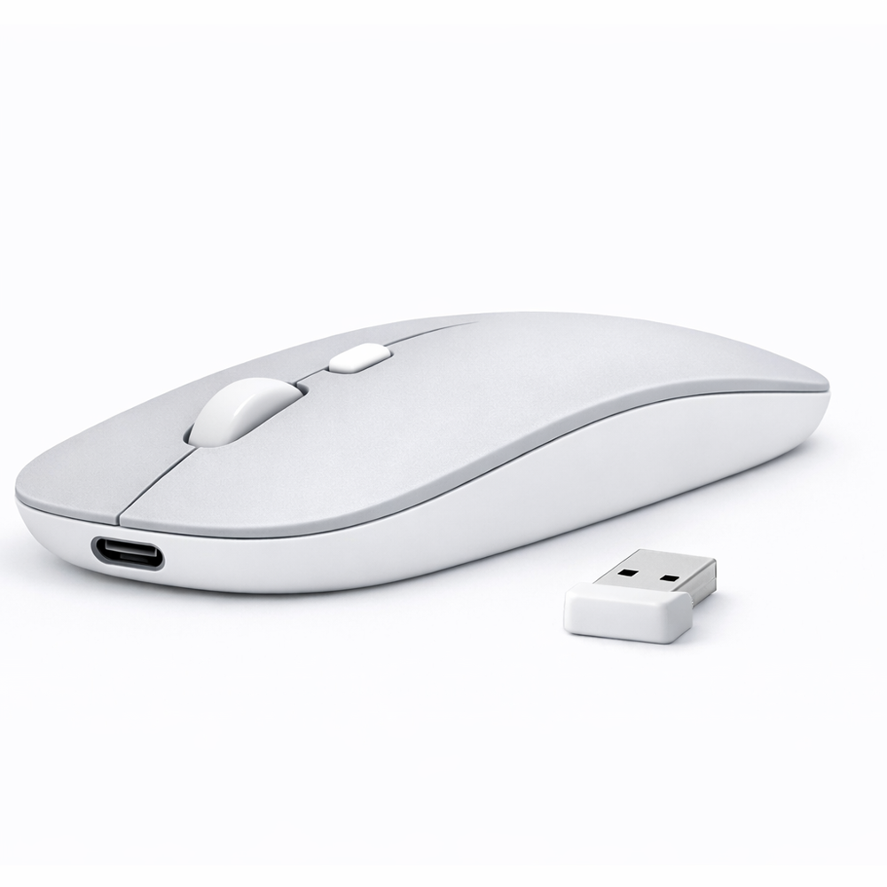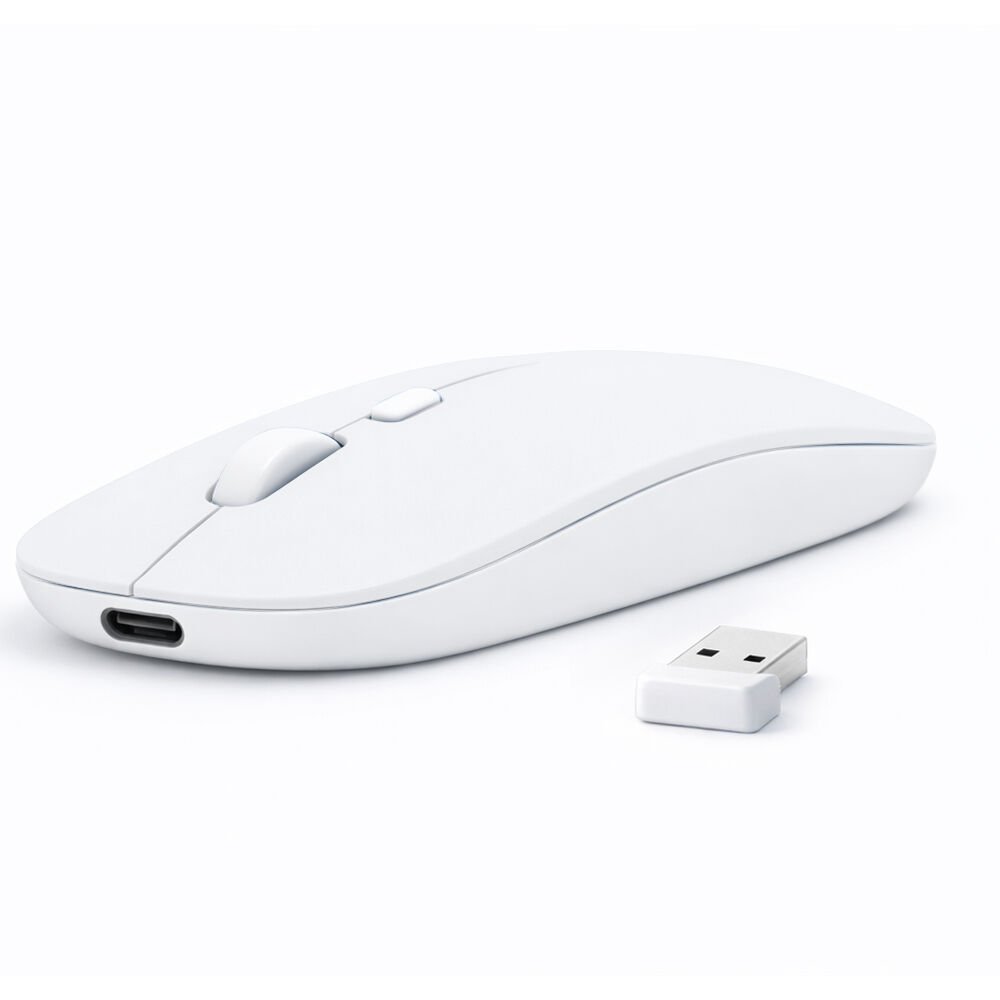 Laptop İçin İnce Kablosuz Mouse Bluetooth Bağlantı Şarjlı Batarya USB Alıcılı Taşınabilir Tasarım