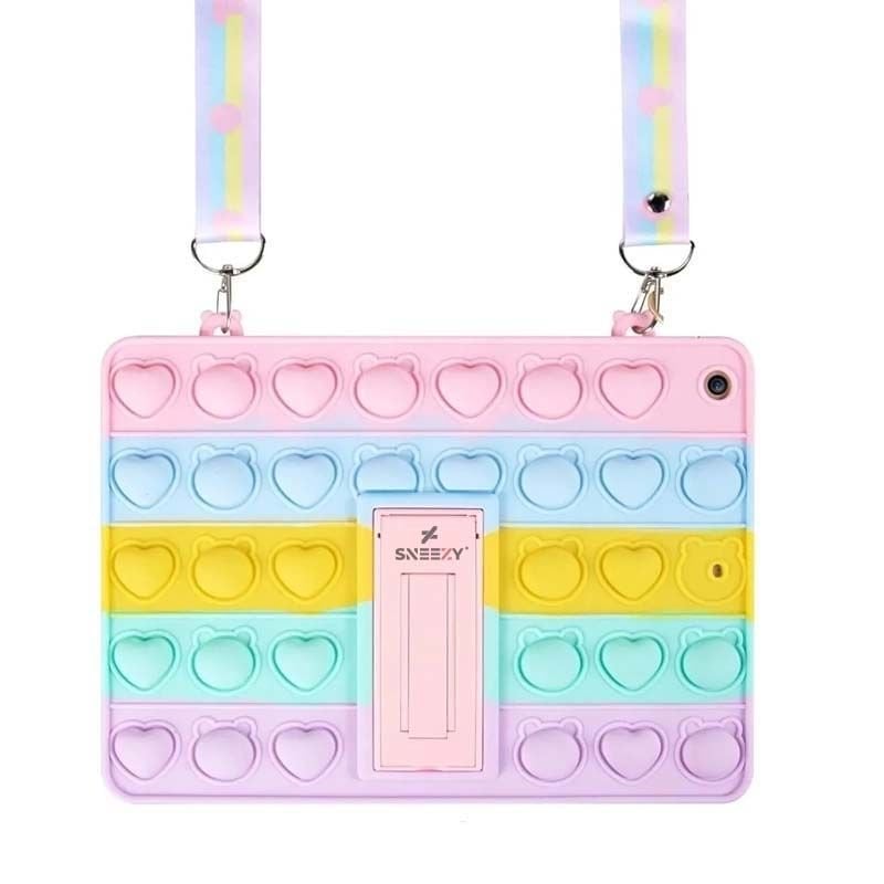 Glow Desenli Standlı Popit Tablet Kılıfı, çocukların en sevdiği Popit oyununu tabletlerinin arkasında da keyifle oynamalarını sağlıyor! Popit oyununun eğlenceli dünyasını tabletinizin koruyucu kılıfında yaşayın. Çocuklarınız, ışıltılı Glow deseniyle çevrili bu kılıfı görünce heyecanlanacak ve tabletlerini korurken aynı zamanda eğlenceli vakit geçirecekler.