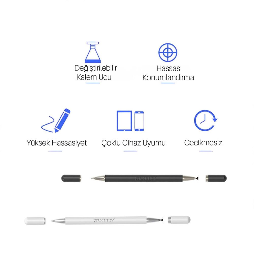 Telefon, tablet ve dokunmatik ekranlı tüm cihazlar için tasarlanan çift uçlu dokunmatik stylus kalem, yüksek hassasiyet ve gecikmesiz kullanım sunarak günlük kullanım, çizim ve not alma işlemlerini çok daha konforlu hale getirir.