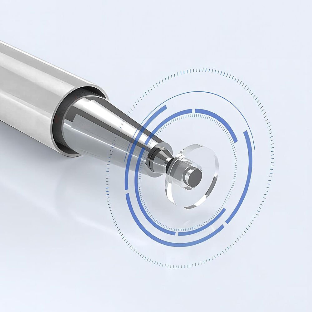 Bir uçta şeffaf disk uç, diğer uçta ince metal uç bulunur. Farklı kullanım ihtiyaçlarına göre hassas ve kontrollü kullanım sağlar.
