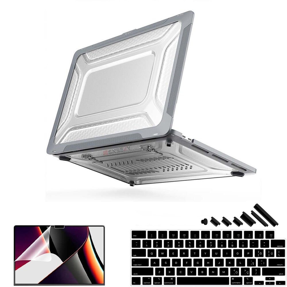 MacBook Air 13.6 İnç Kılıf M3-M2 / A3113-A2681 Zırh Özellikli Dayanıklı Koruyucu Sert Kılıf Gri Set-3