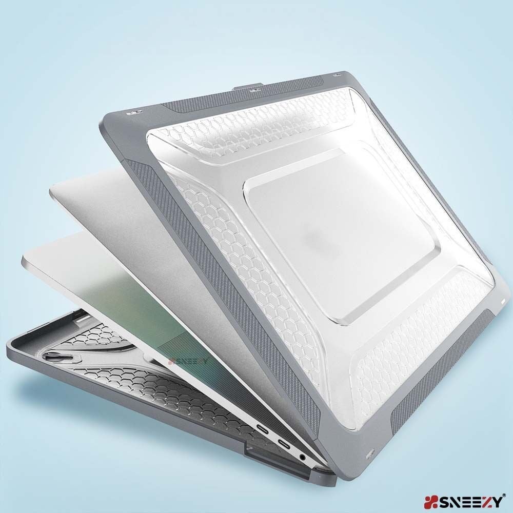 MacBook Pro 13.3 İnç Kılıf M1 / A2338-A2251-A2289 Zırh Özellikli Dayanıklı Koruyucu Sert Kılıf Gri Set-2