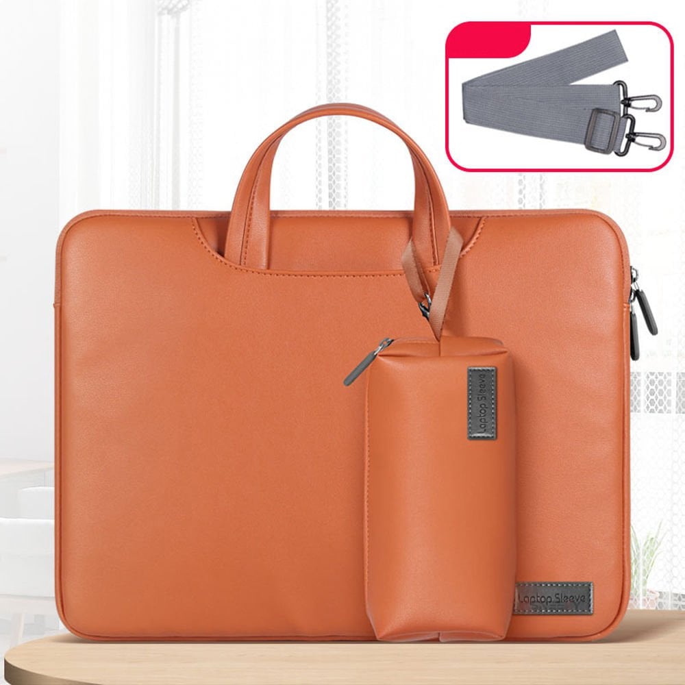 Macbook'unuzu hem şık hem de güvenli bir şekilde taşıyın! Minimalist tasarımıyla dikkat çeken bu suni deri laptop çantası, dayanıklı dış yüzeyi sayesinde cihazınızı çizilmelere, darbelere ve sıvı dökülmelerine karşı korur. Yumuşak iç astarı, laptopunuzu darbelerden korurken dış kısımda yer alan fermuarlı cepler ise şarj cihazı, telefon veya diğer aksesuarlarınızı güvenle saklamanızı sağlar. Lüks görünümü ve zarif dokusuyla suni deri yapısı, estetik ve profesyonel bir hava katarken, taşıma kolları sayesinde elde taşımaya uygun olan bu çanta, ince ve hafif yapısıyla her yerde yanınızda olabilecek ideal bir aksesuardır.