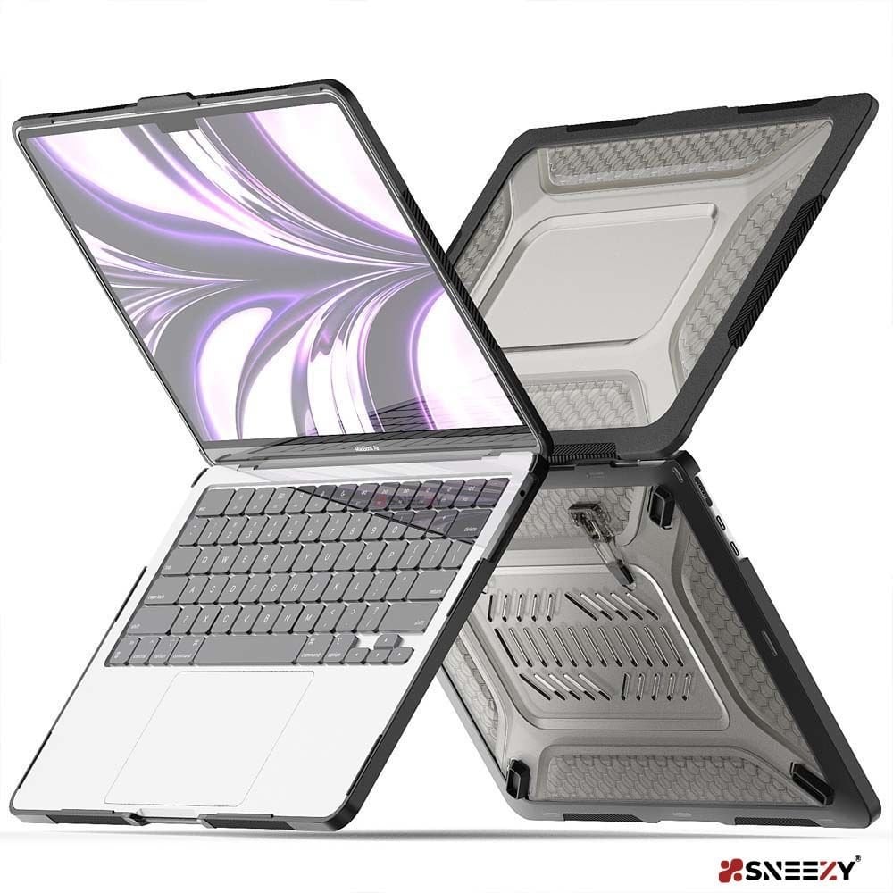 MacBook Pro 14.2 İnç Kılıf M1-M2-M3 A2442-A2779-A2992 Zırh Özellikli Dayanıklı Koruyucu Sert Kılıf Siyah - Siyah