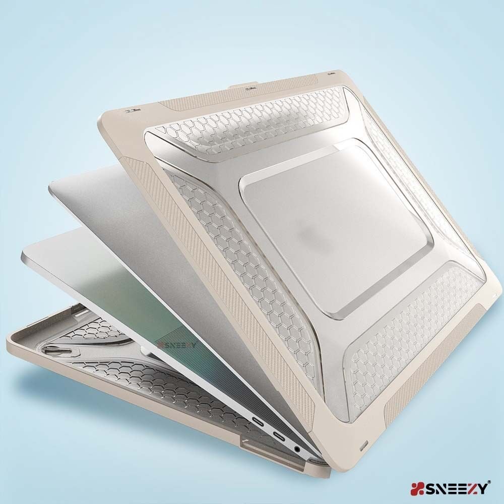 MacBook Pro 16.2 İnç Kılıf M1-M2-M3 A2485-A2780-A2991 Zırh Özellikli Dayanıklı Koruyucu Sert Kılıf Gold - Gold