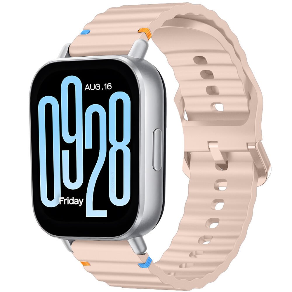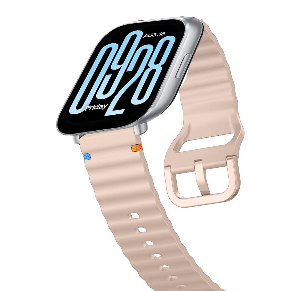 Redmi watch 5 Lite 5 Active İle Uyumlu Dalga Desenli Tokalı Yumusaş Soft Silikon Kordon Pudra