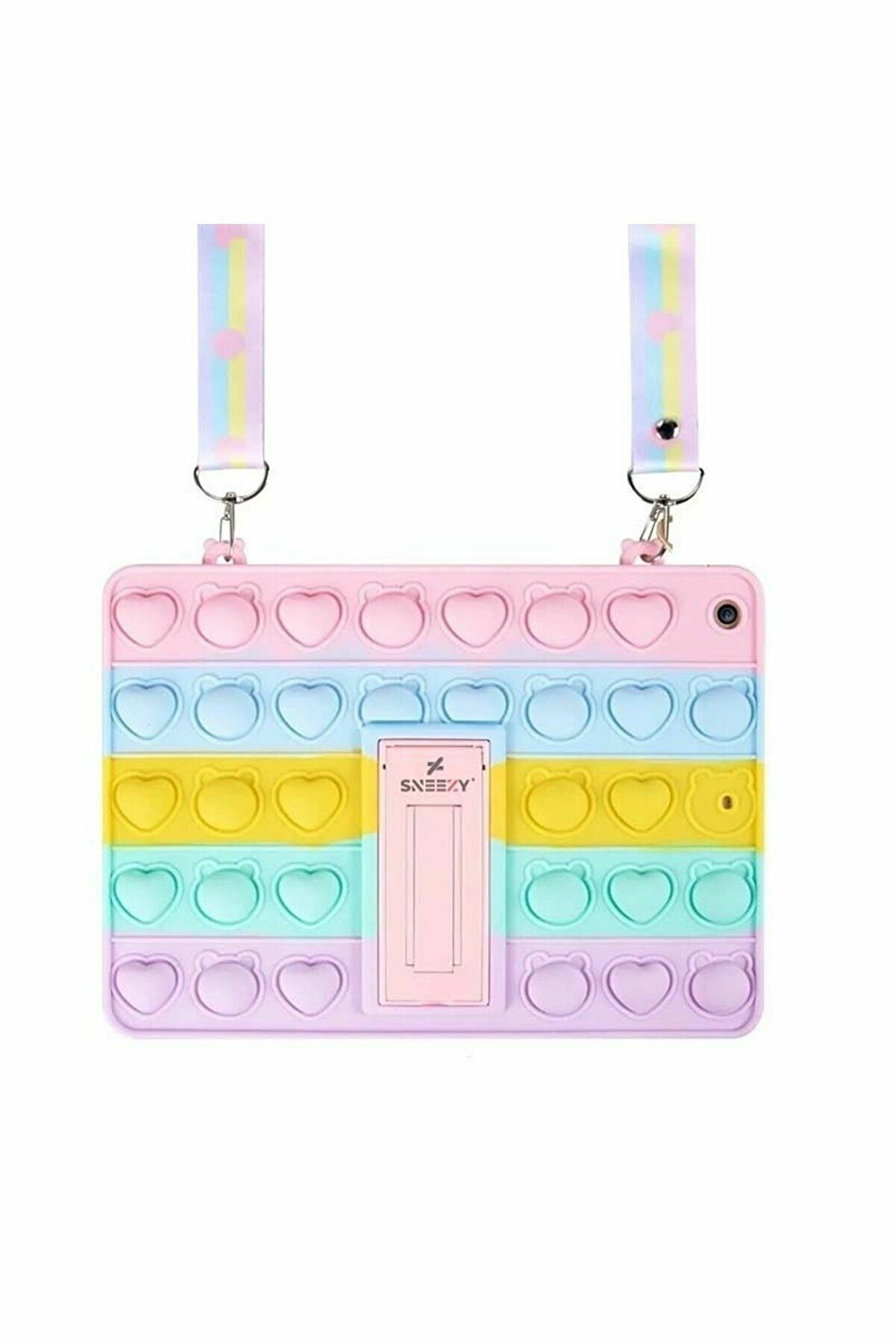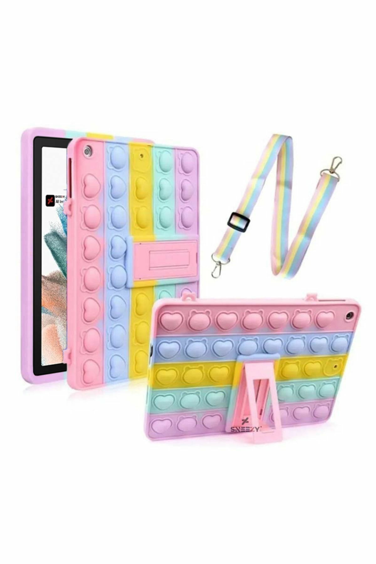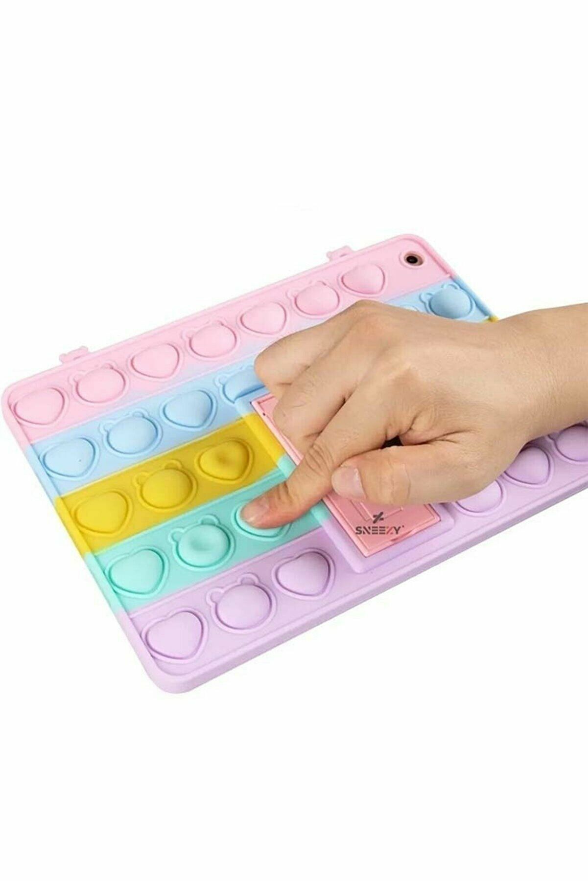 Glow Desenli Standlı Popit Tablet Kılıfı, çocukların en sevdiği Popit oyununu tabletlerinin arkasında da keyifle oynamalarını sağlıyor! Popit oyununun eğlenceli dünyasını tabletinizin koruyucu kılıfında yaşayın. Çocuklarınız, ışıltılı Glow deseniyle çevrili bu kılıfı görünce heyecanlanacak ve tabletlerini korurken aynı zamanda eğlenceli vakit geçirecekler.