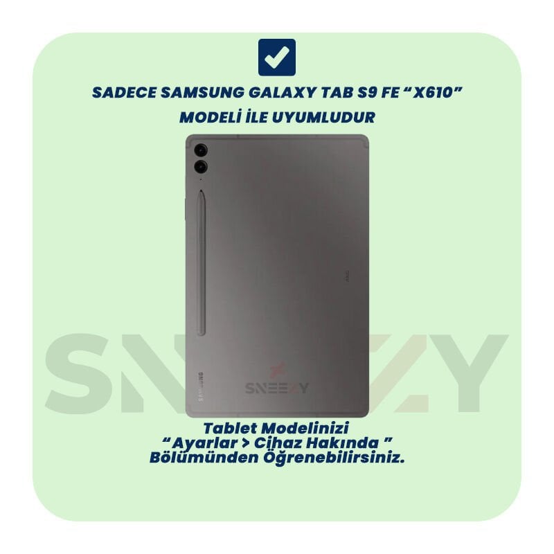 Uyumluluk: Samsung Galaxy Tab S9 FE X510 11 İnç