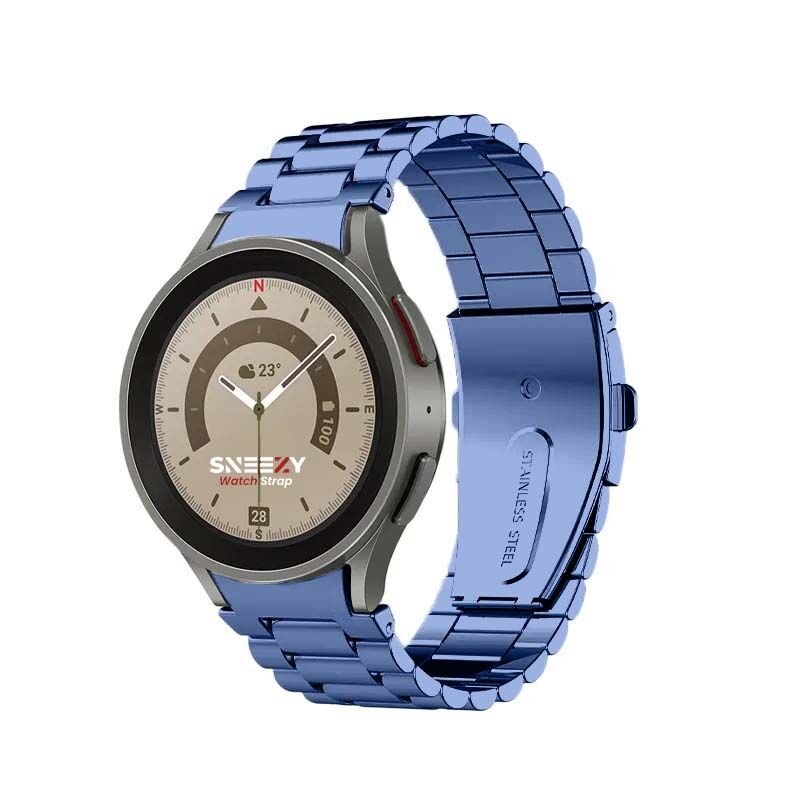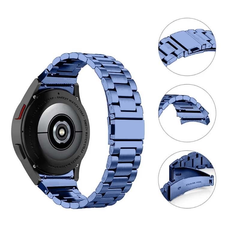 Samsung Galaxy Watch 4 5 Pro 40 42 44 45 46mm Uyumlu Kavisli Ironweft Döküm Çelik Metal Kordon Lacivert