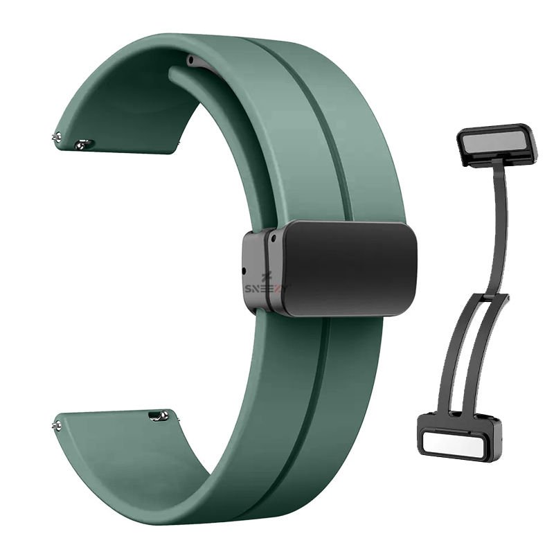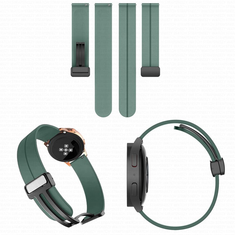 Samsung Galaxy Watch 5 40-44mm Uyumlu 20mm Coastal Manyetik Tokalı Silikon Kordon Haki - Haki