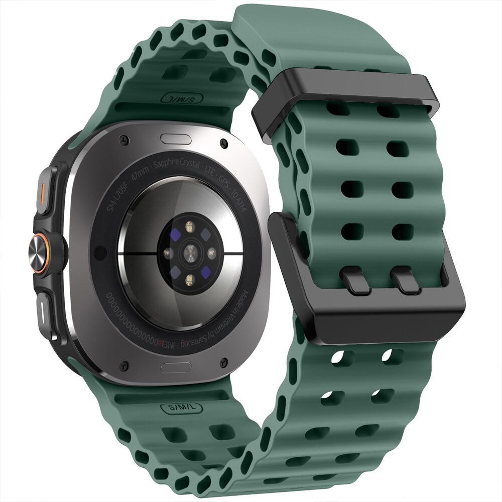 Dayanıklı metal tokası, güvenli bir kullanım sağlarken, yumuşak silikon malzemesi ise cildinizde hassas ve rahat bir his bırakır. Esnek yapısı, bileğinize tam oturur ve uzun süreli kullanımlarda bile rahatsızlık vermez. Şık ve modern tasarımı, her türlü tarza uyum sağlar. Samsung Galaxy Watch 7 Ultra ile mükemmel uyum sağlayan bu kordon, günlük kullanım ve spor aktiviteleri için idealdir.