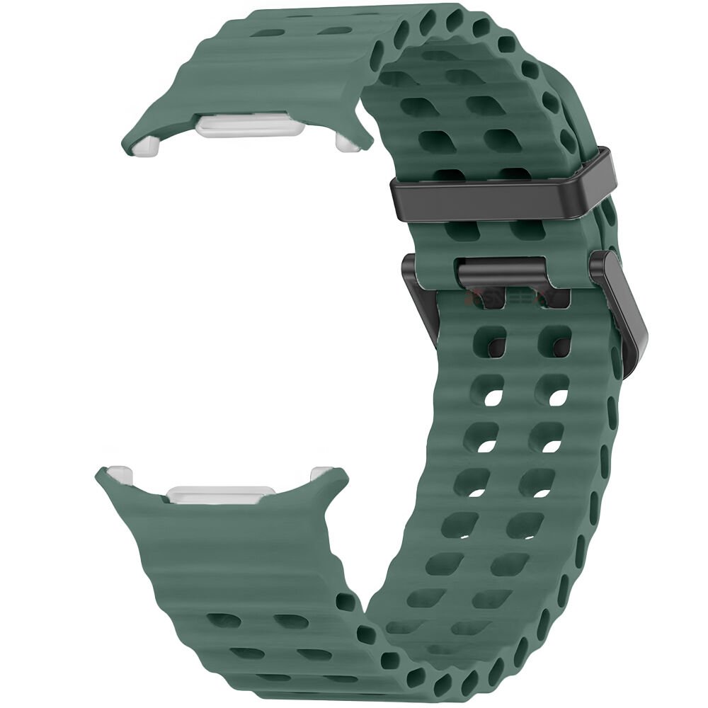 Samsung Galaxy Watch 7 Ultra İle Uyumlu AirFlow Metal Tokalı Yumuşak Soft Silikon Kordon Haki